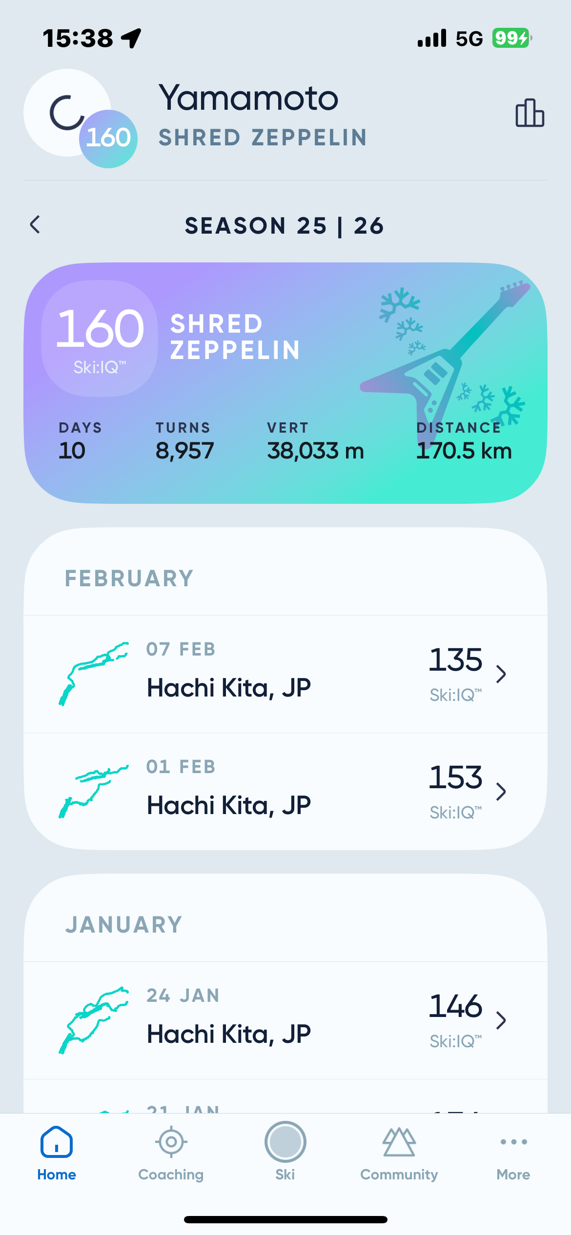 CARVアプリをアップデートしたらSki IQ大幅アップ