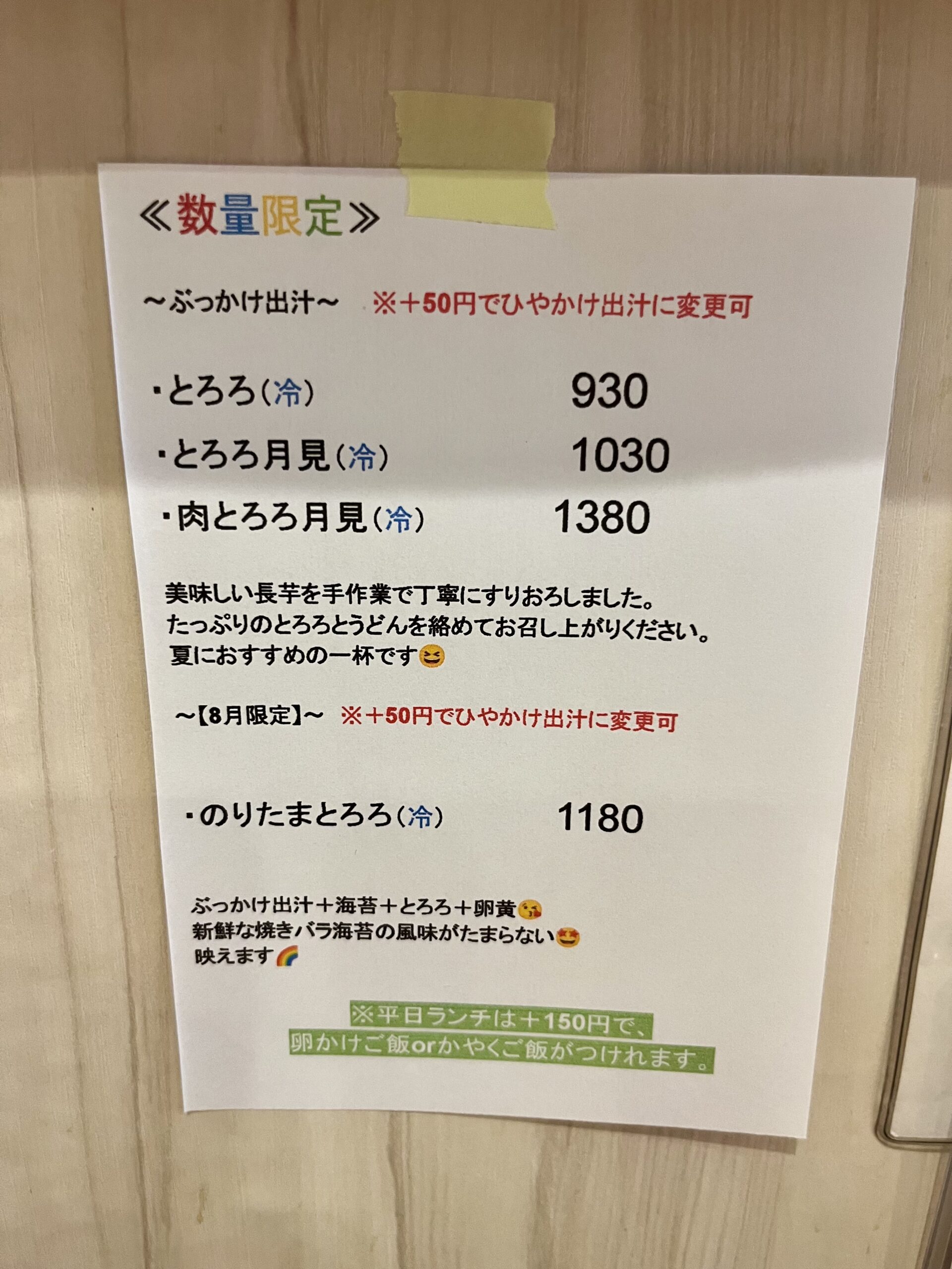 美味しそうですが,小麦の香りがきわ立つここのうどんの美味しさがとろろの影に隠れてしまいそうな気がして躊躇してしまいました。