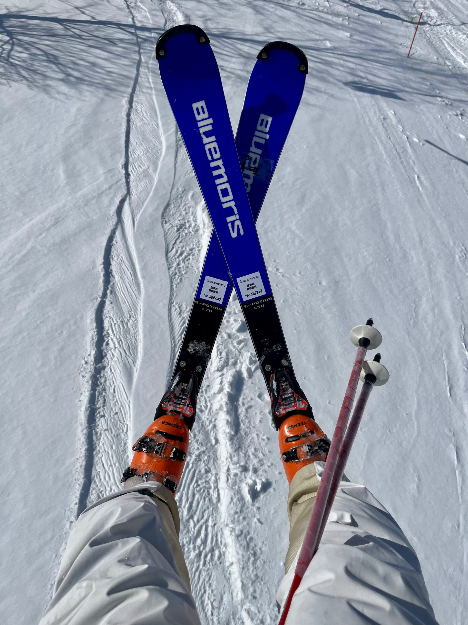 この日はすこし柔らかめの雪だったのでBMプレートのS-POTIONのほうがキレイにたわみがでて扱いやすいように感じました。