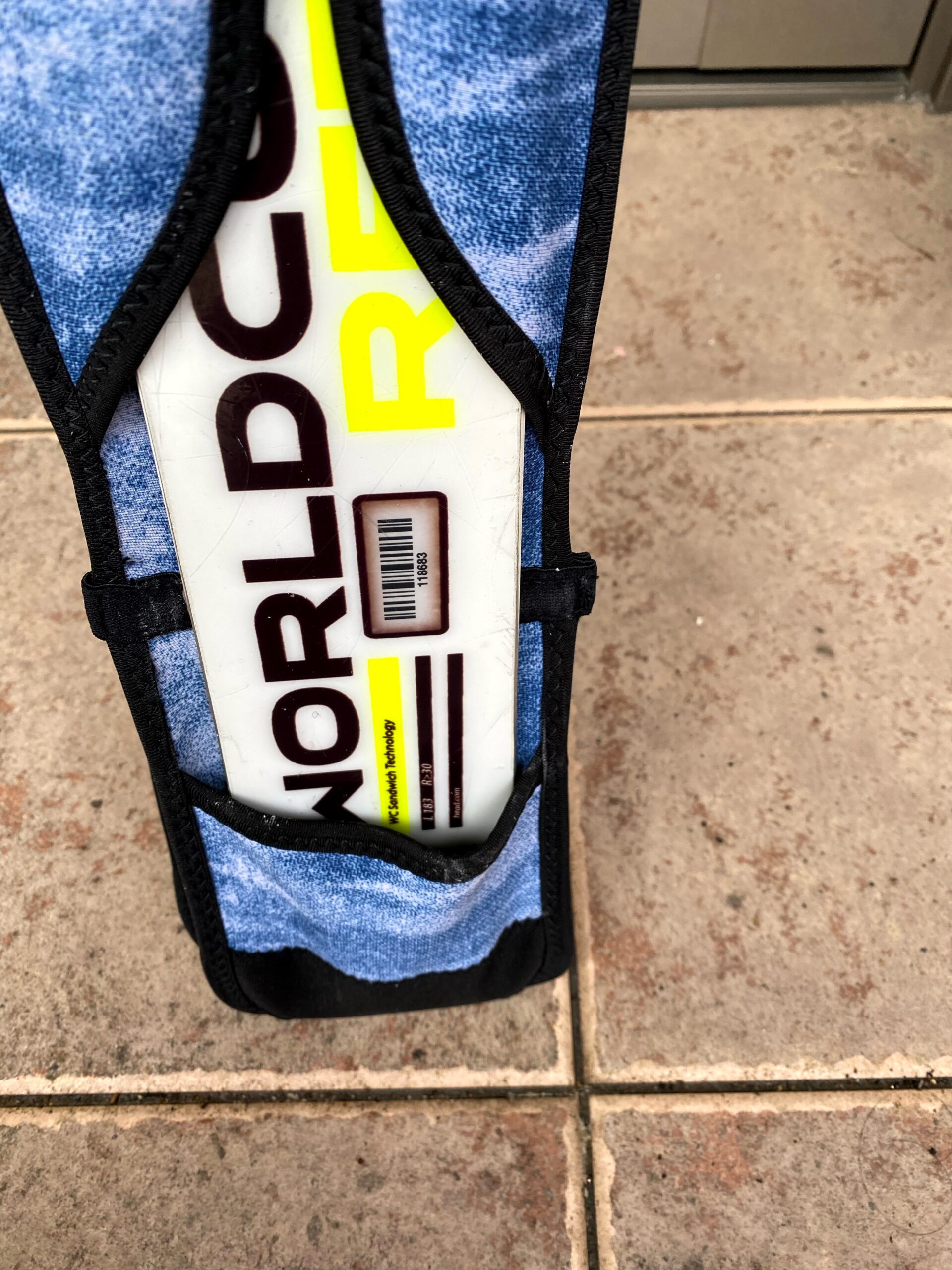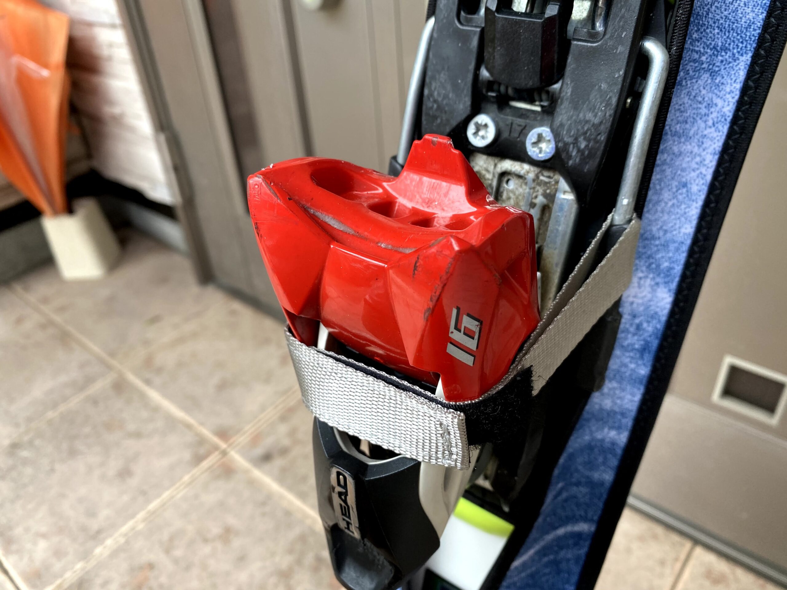 M/Lサイズで165cmから180cmのスキー板に適合するそうですが、ワタクシの大回り用、ヘッドGS RDで試してみたところ