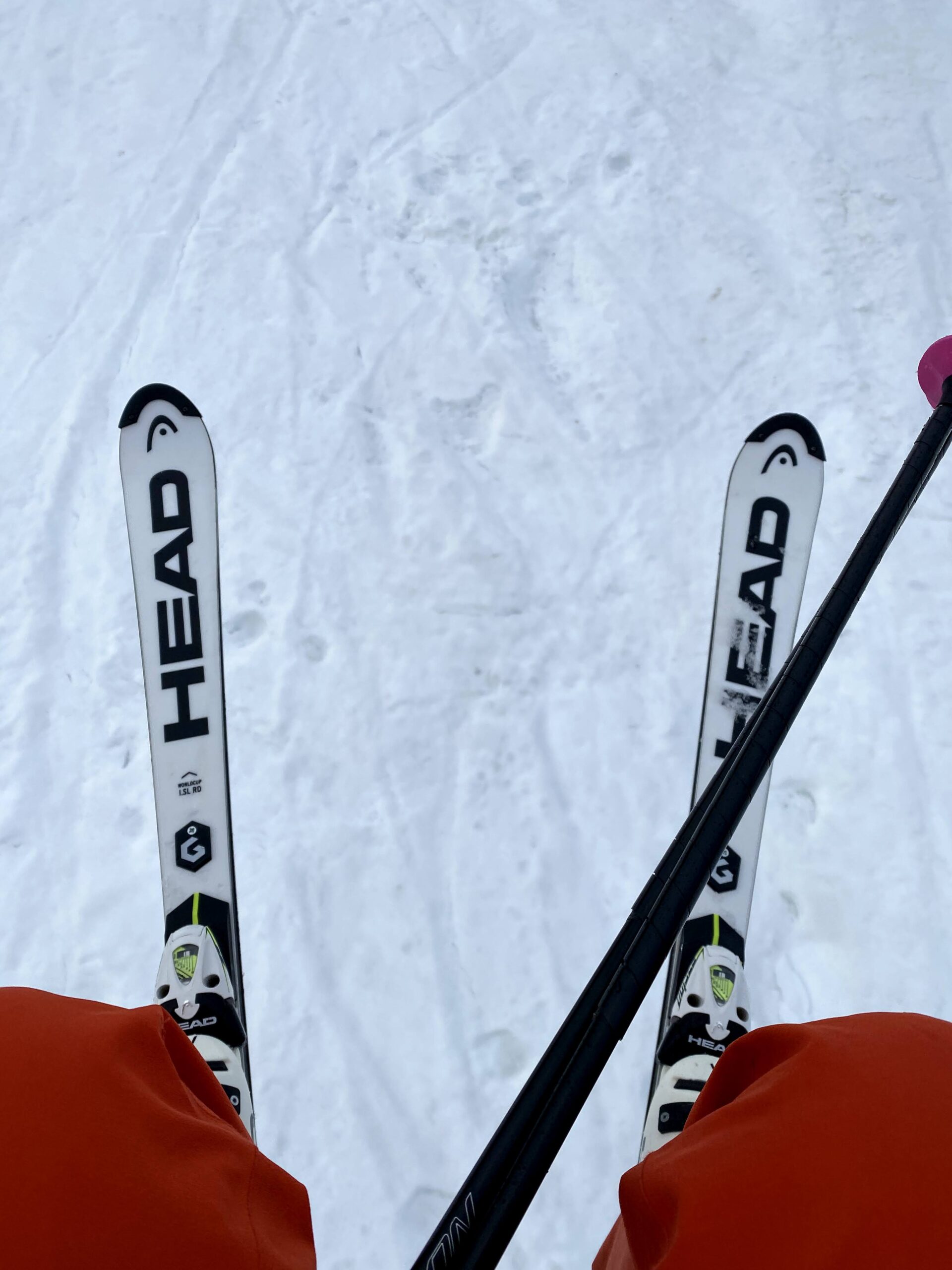 あいにく夜から早朝にかけての雨でゲレンデの雪が溶けてしまい、ところどころブッシュや土が露出してしまう状態で、Y君の車に乗せてきてもらうためにエース板のヘッドSL1本しか持参しておらず、場所によってはかなり板を傷つけないように神経を使う羽目に。