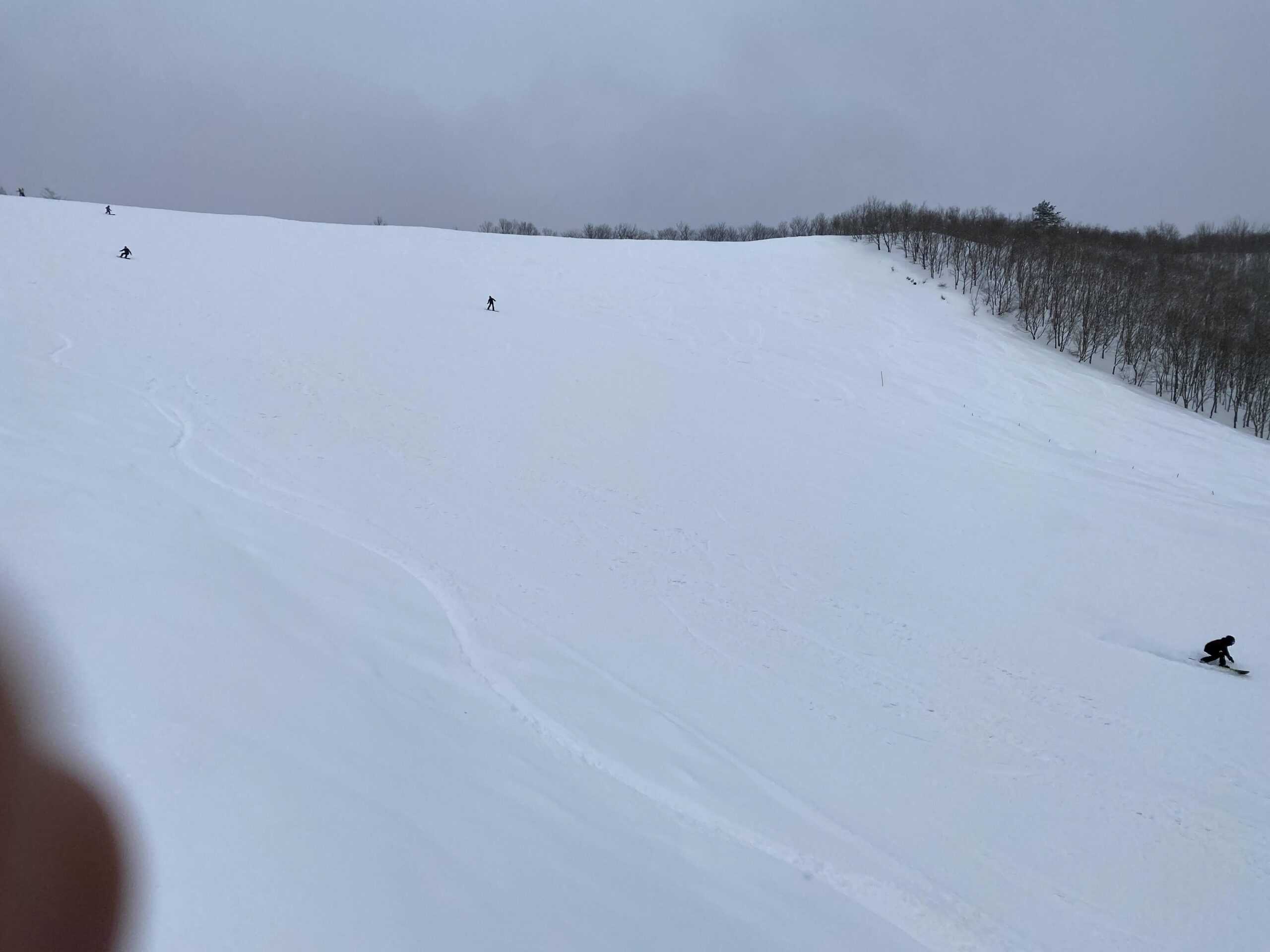 朝一は気持ち良く滑れますがすぐに斜面が荒れてきて細かなギャップで滑走ラインを落とされます。