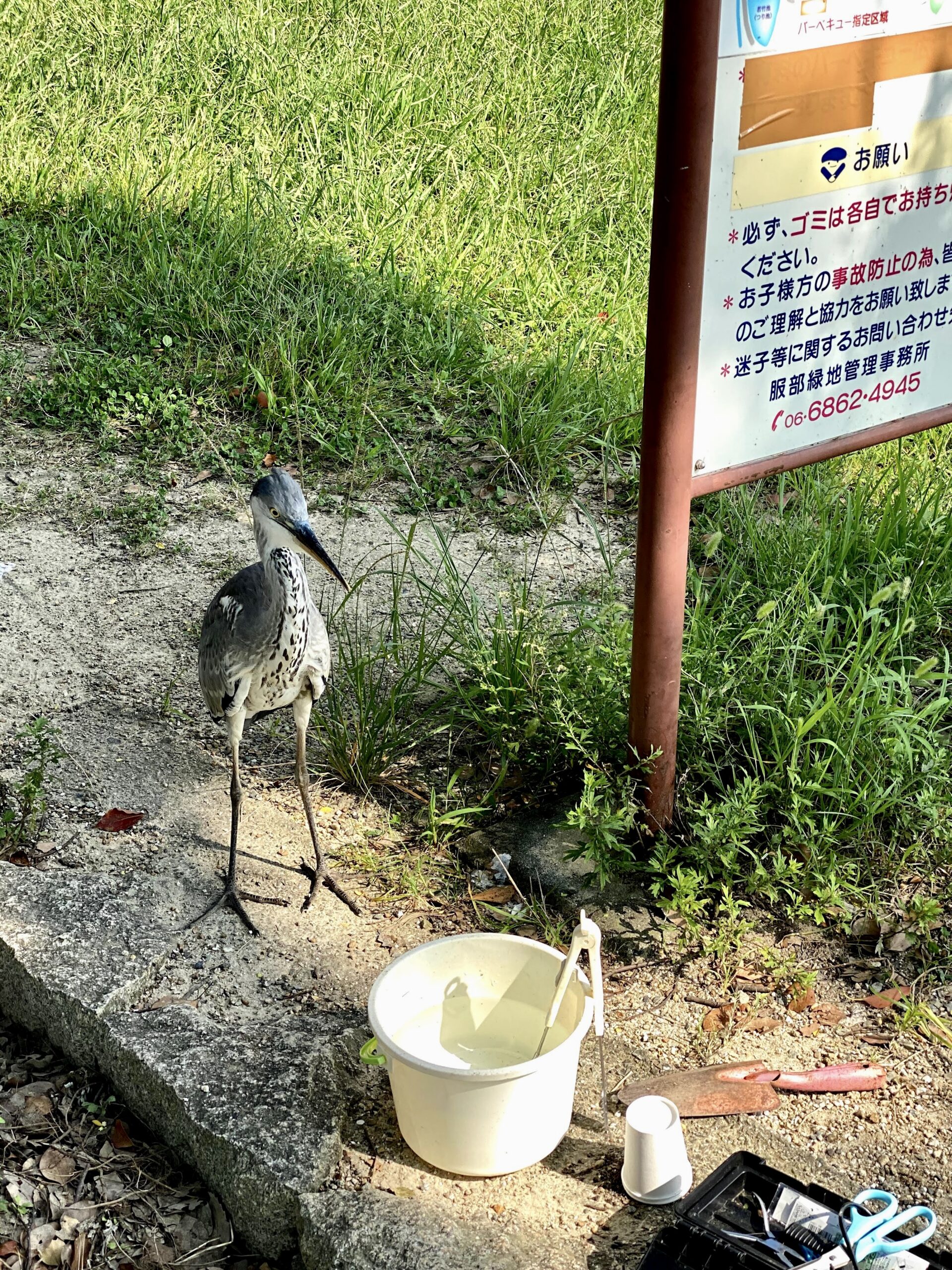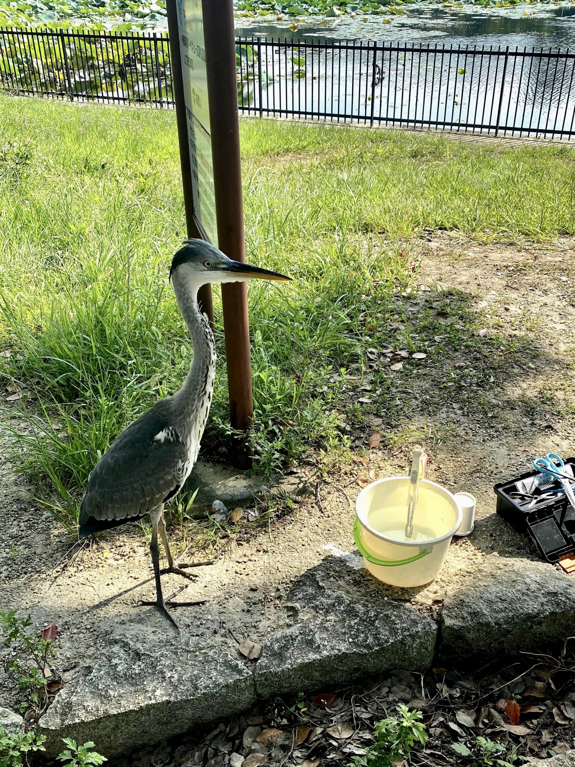 公園内を歩いていると,池のほとりでアオサギが佇んでいます。