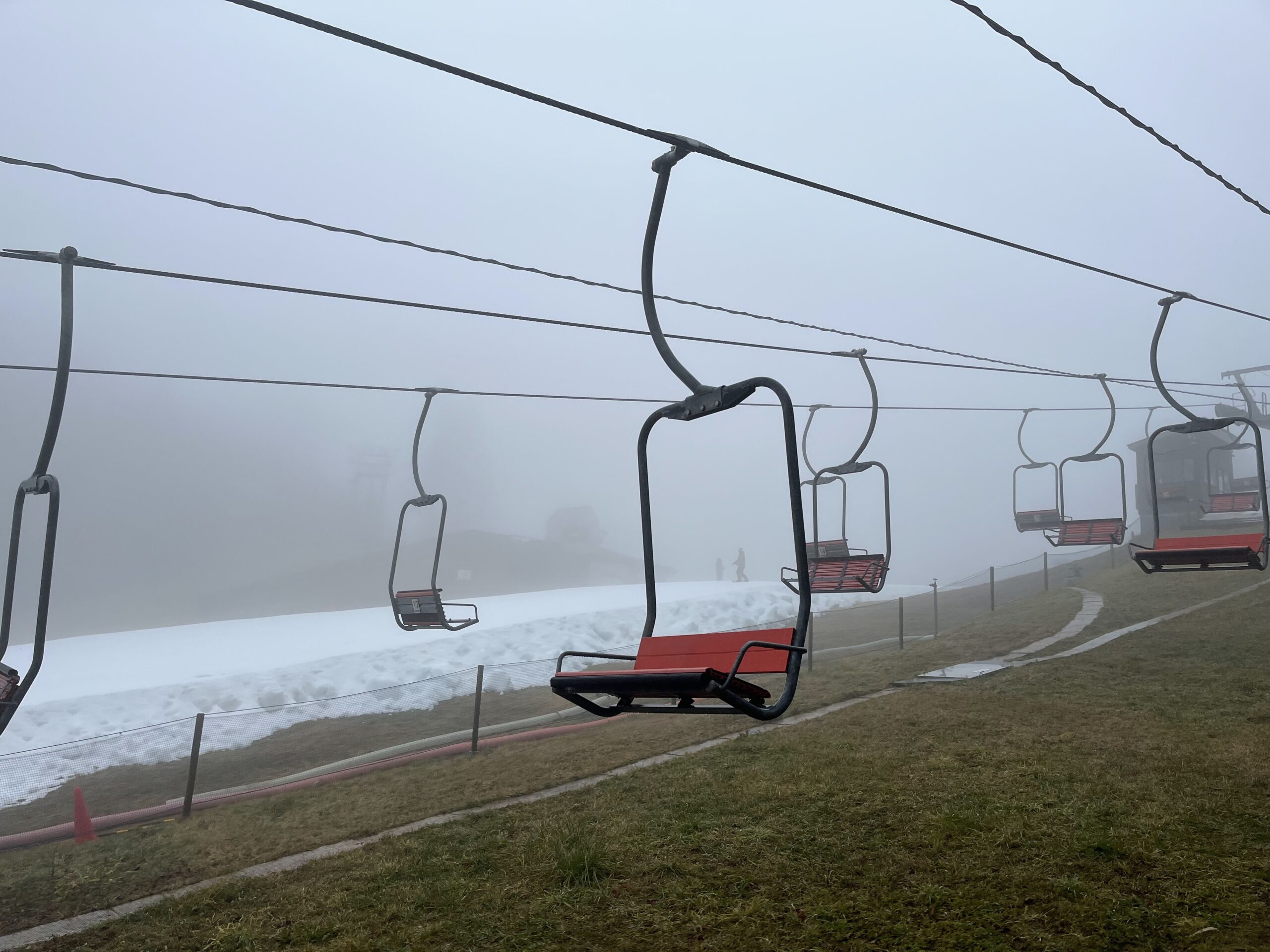 雨なので覚悟はしていましたが霧も出ていたので動画撮影はできなかったのが残念ですが、スキーをするには問題ない程度の視界はあり、ゲレンデは空いていてスキーの滑走性も良好。