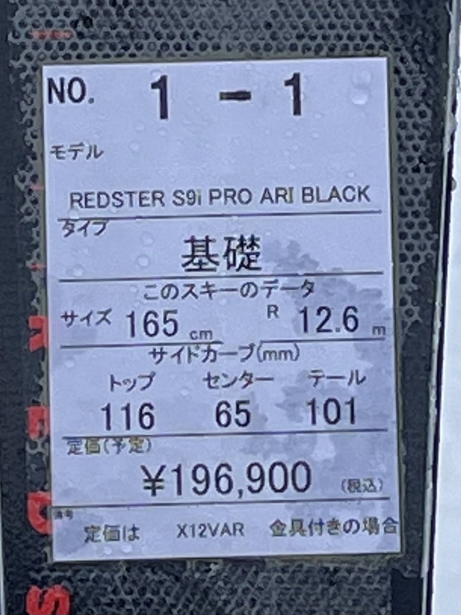 今年のモデルはSIDECUT 115.9/65.3/101.3だったのに対して、ニューモデルは116/65/101の表記ですが、誤差の範囲かな?(石井スポーツの試乗記リストでは今年のモデル同様115.9/65.3/101.3の表記でした)