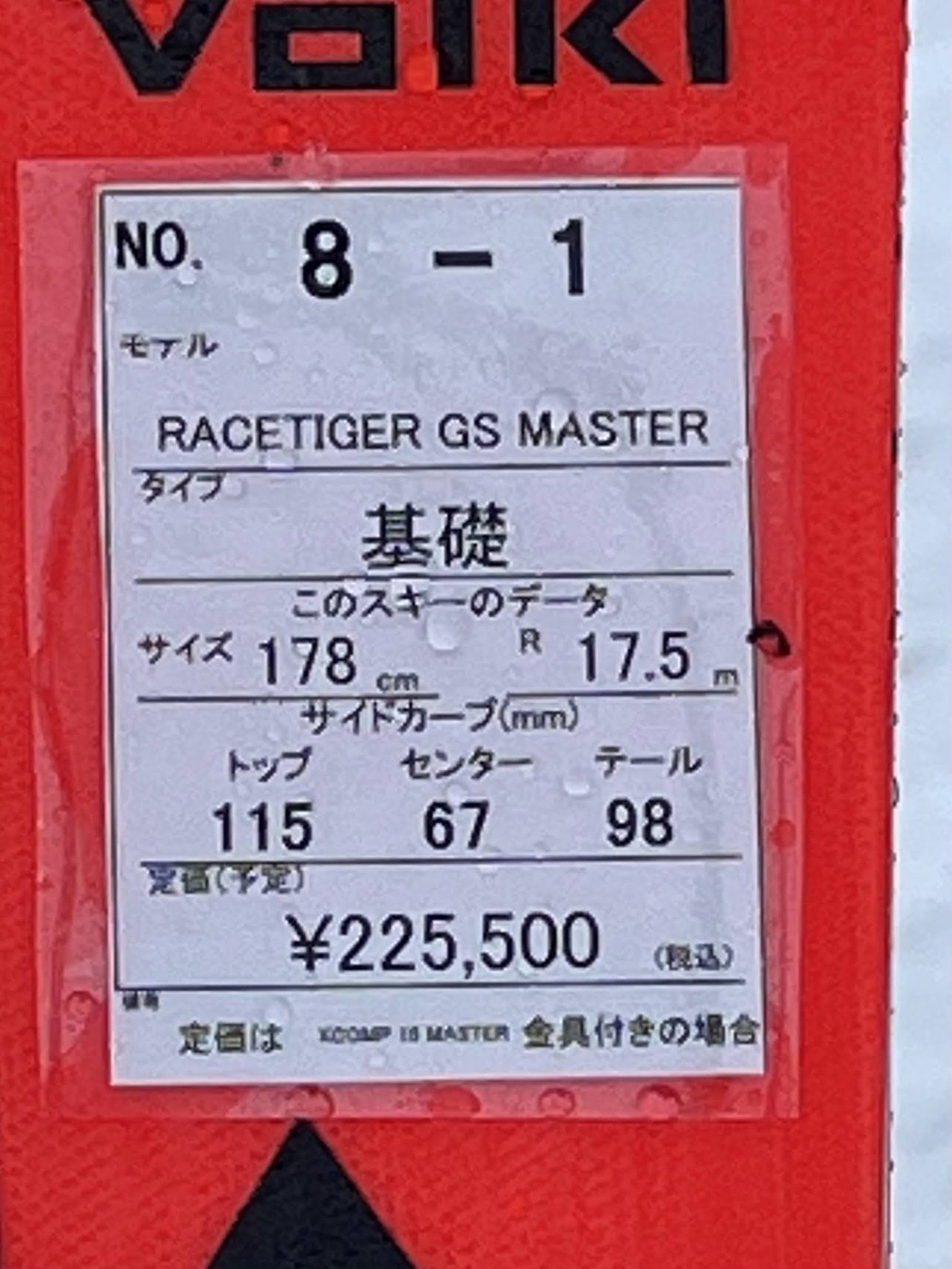 フォルクルRACETIGER GS MASTER 178cm