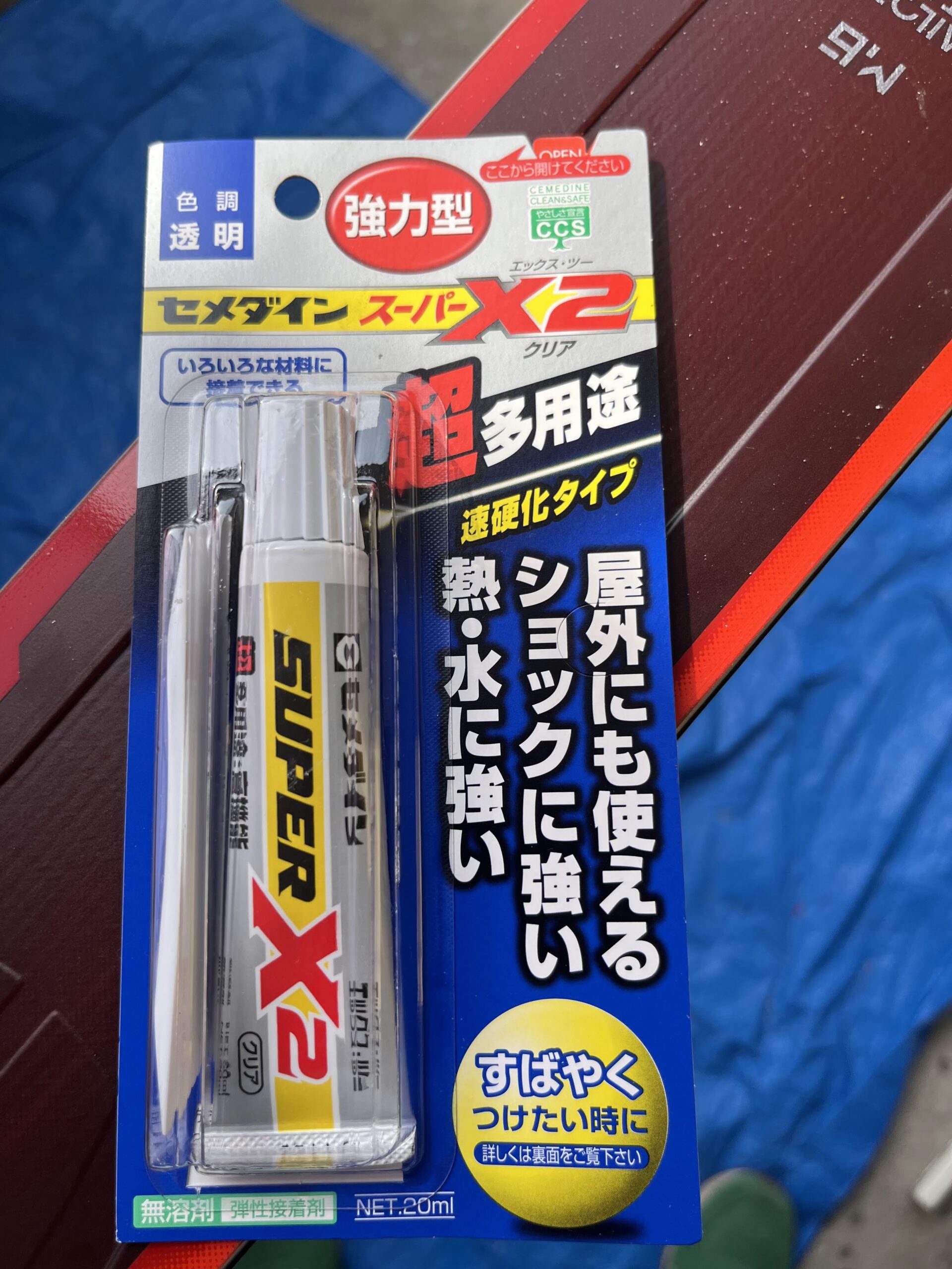 耐寒性,耐水性に優れていて,完全に硬化しない弾性接着剤なのでショックにも強いセメダインスーパーXを使いました。