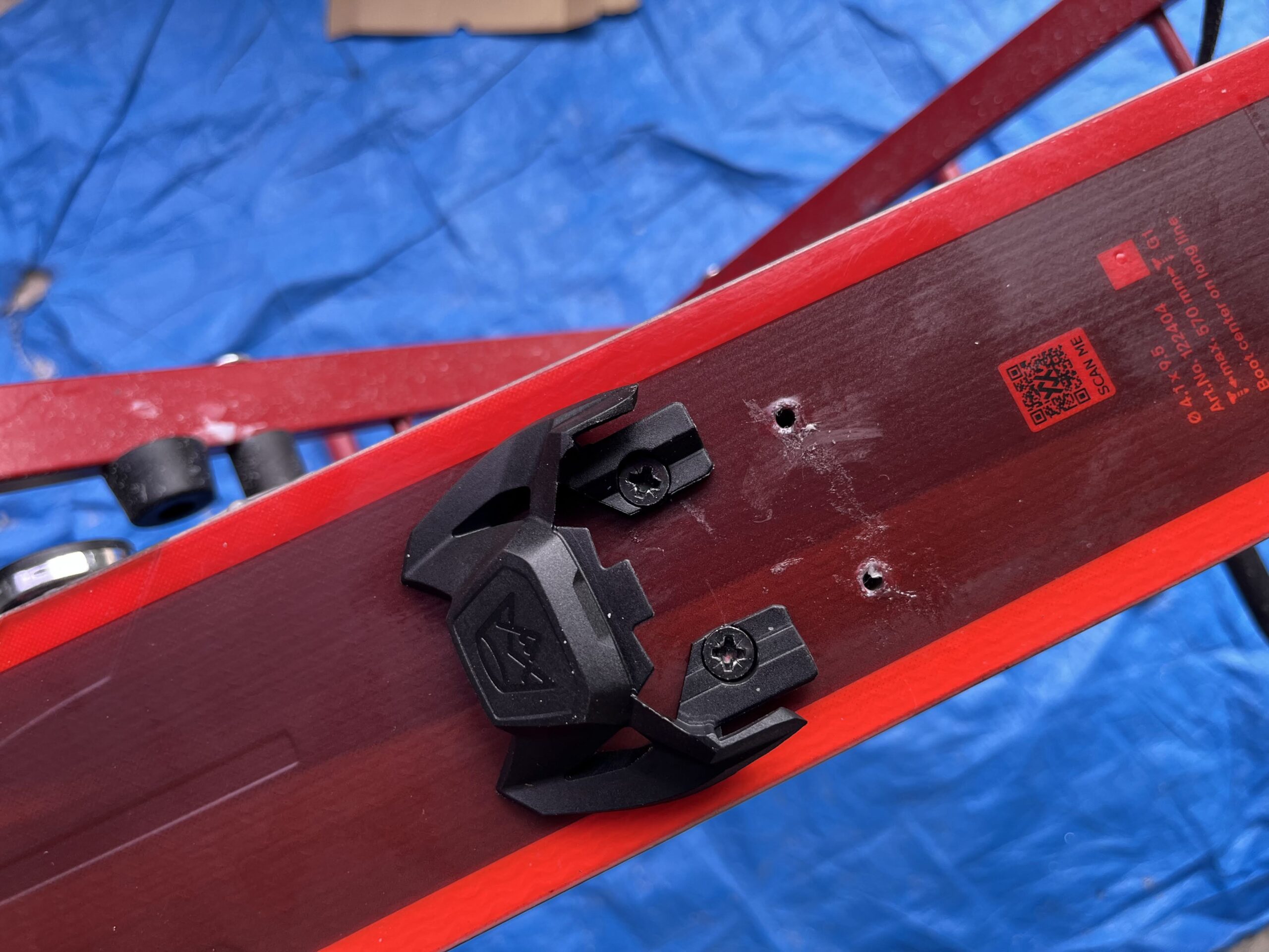 トウピース本体の先端にある調整ネジがベースプレートの穴とズレるとトウピース本体の固定ネジの穴とスキー本体のネジ穴が合わなくてちょっぴり焦りました。