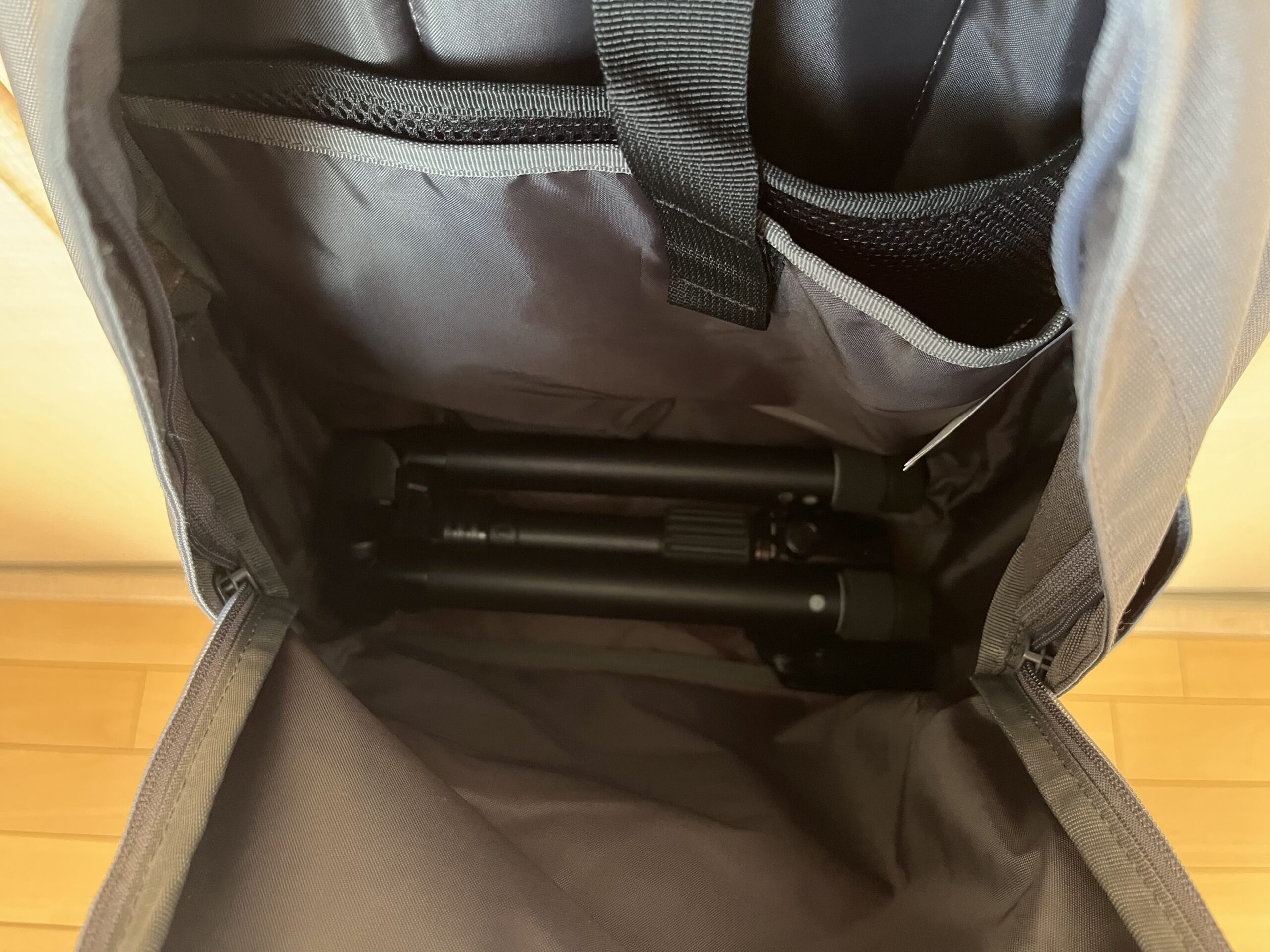 ちなみに,いままで使っていた三脚だと,一般的なリュックサックには入らない。