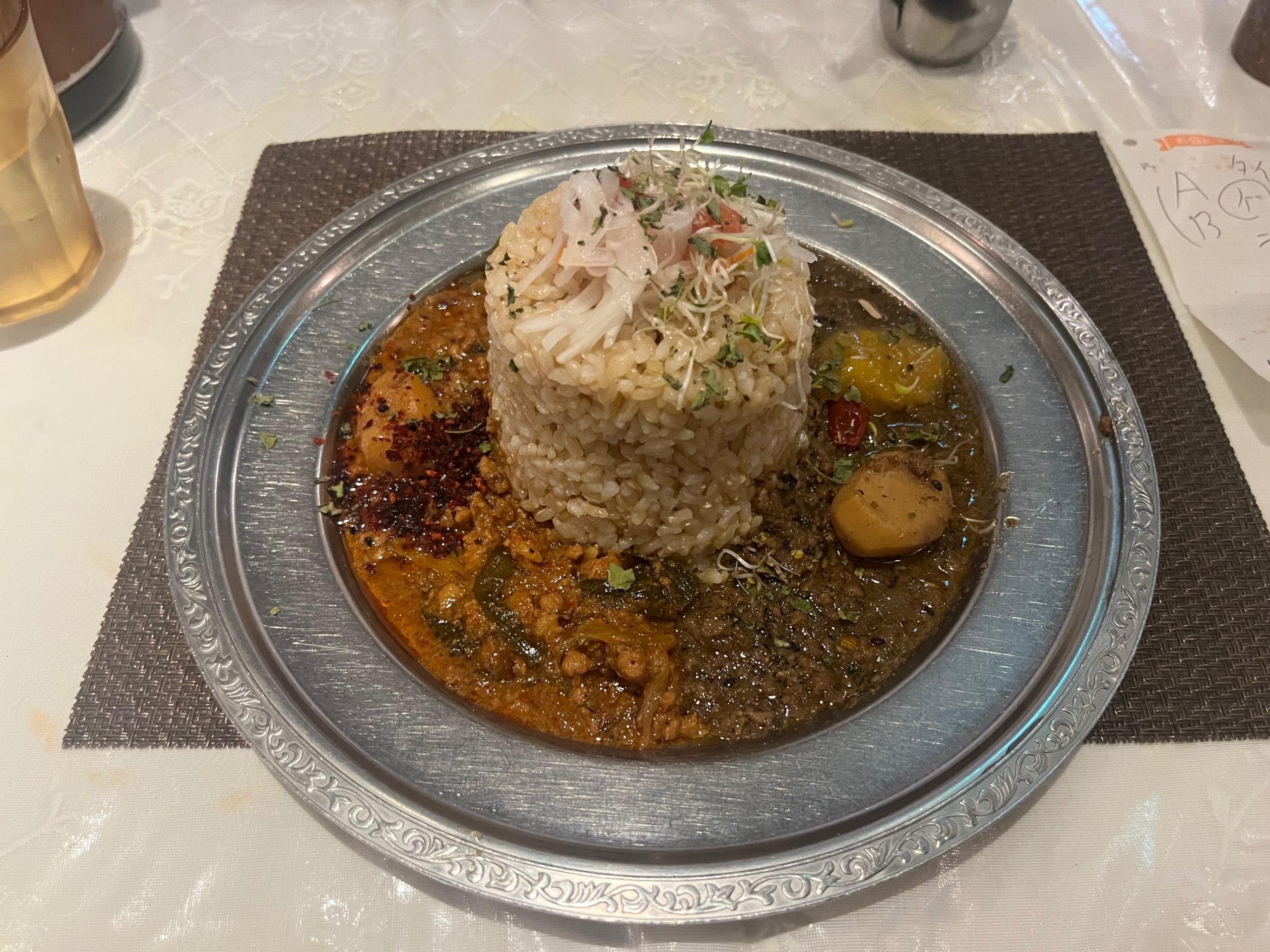 一つ一つのカレーがかなり個性が強いので、別々に食べても楽しいし、混ぜてしまって味のハーモニーを味わうのも美味しい。
