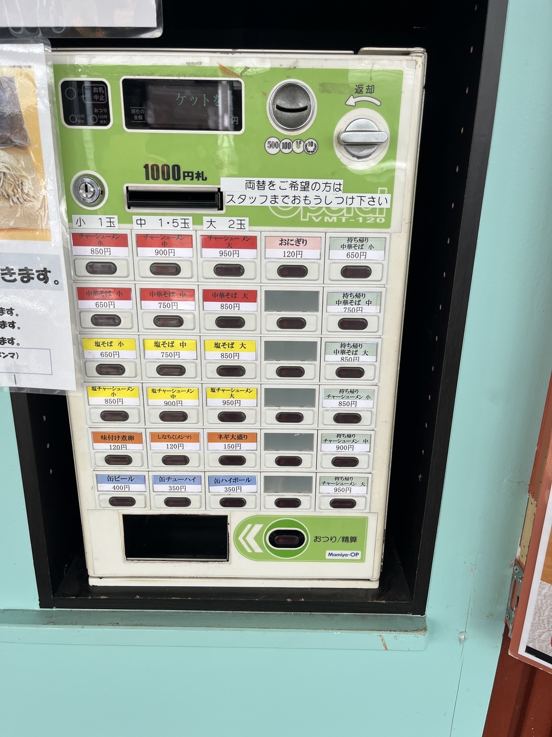 チャーシューメンを大盛りにしても1000円でお釣りが来る,950円。