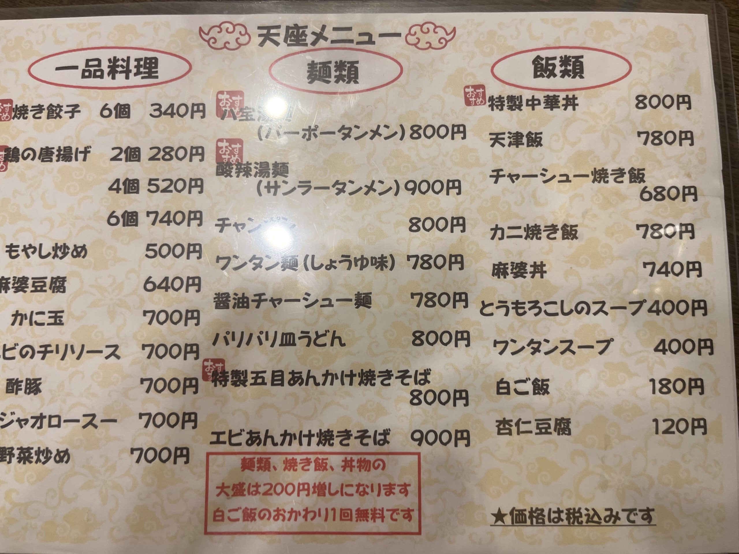 我が家で絶大な人気を誇る「中華上原」さんができてからすこし足が遠のいていましたが、家庭的なやさしい味付けの中華料理がいただける天座さん。