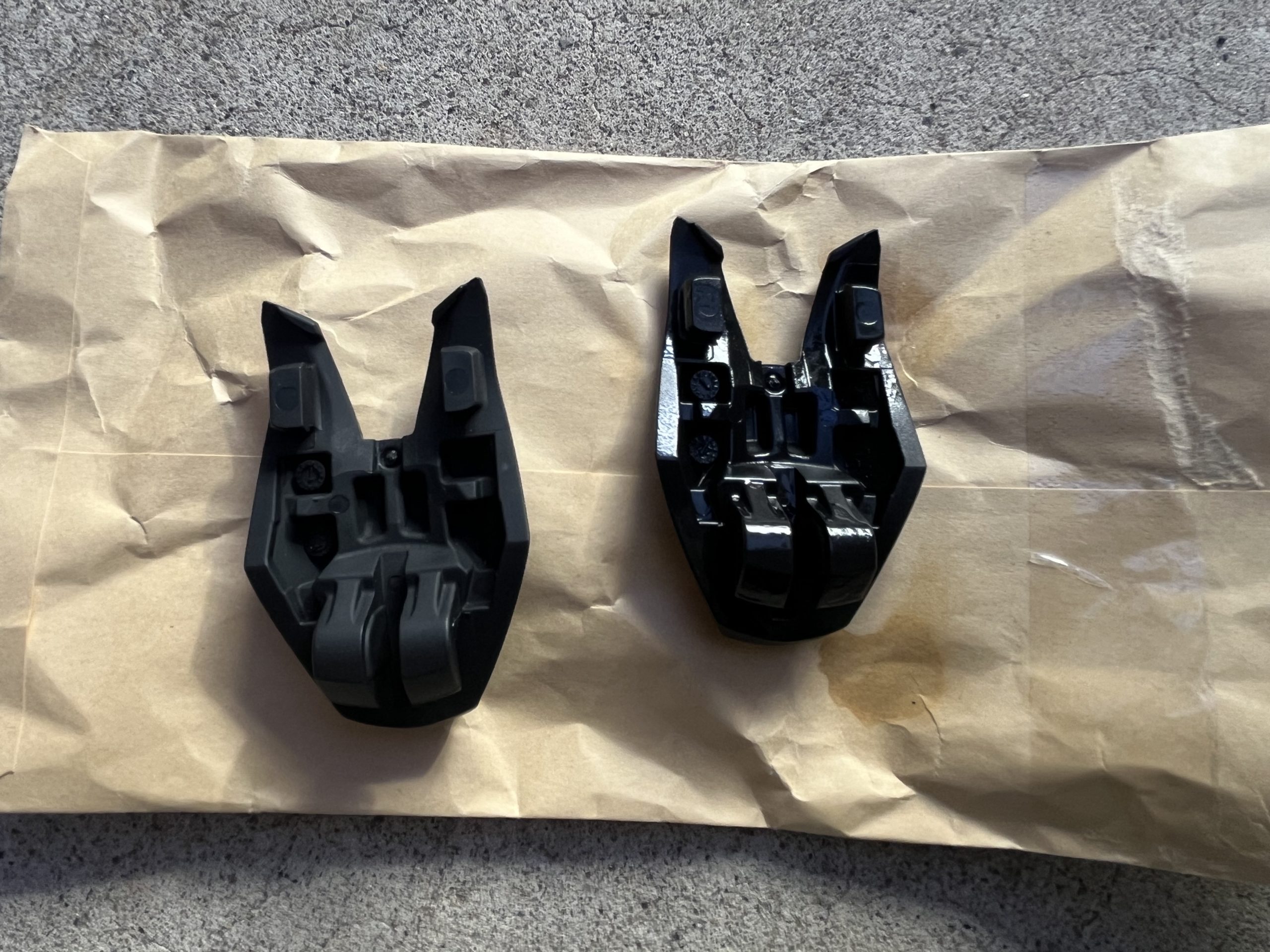 今回購入できたチロリア/HEADビンディングのヒールピースカバー補修部品、やはり1世代新しい「EVO」ビンディング以降のものと同一の形状でした。