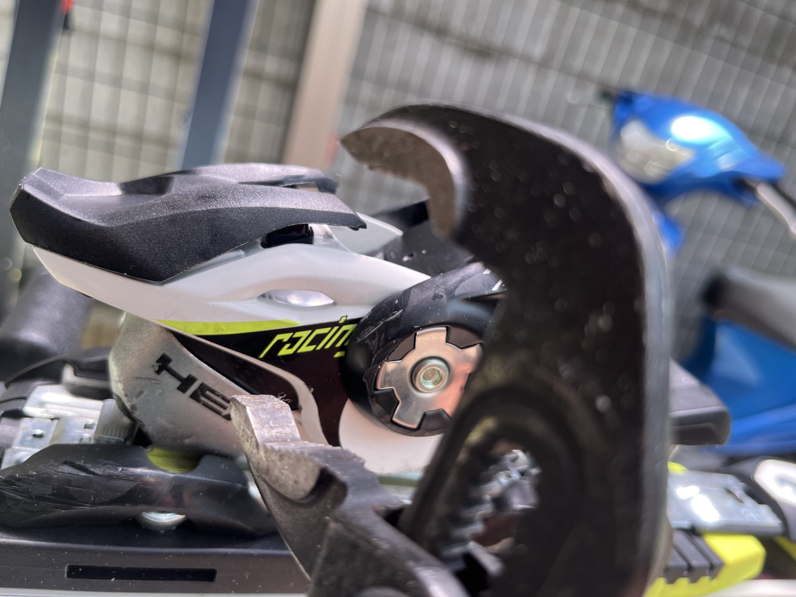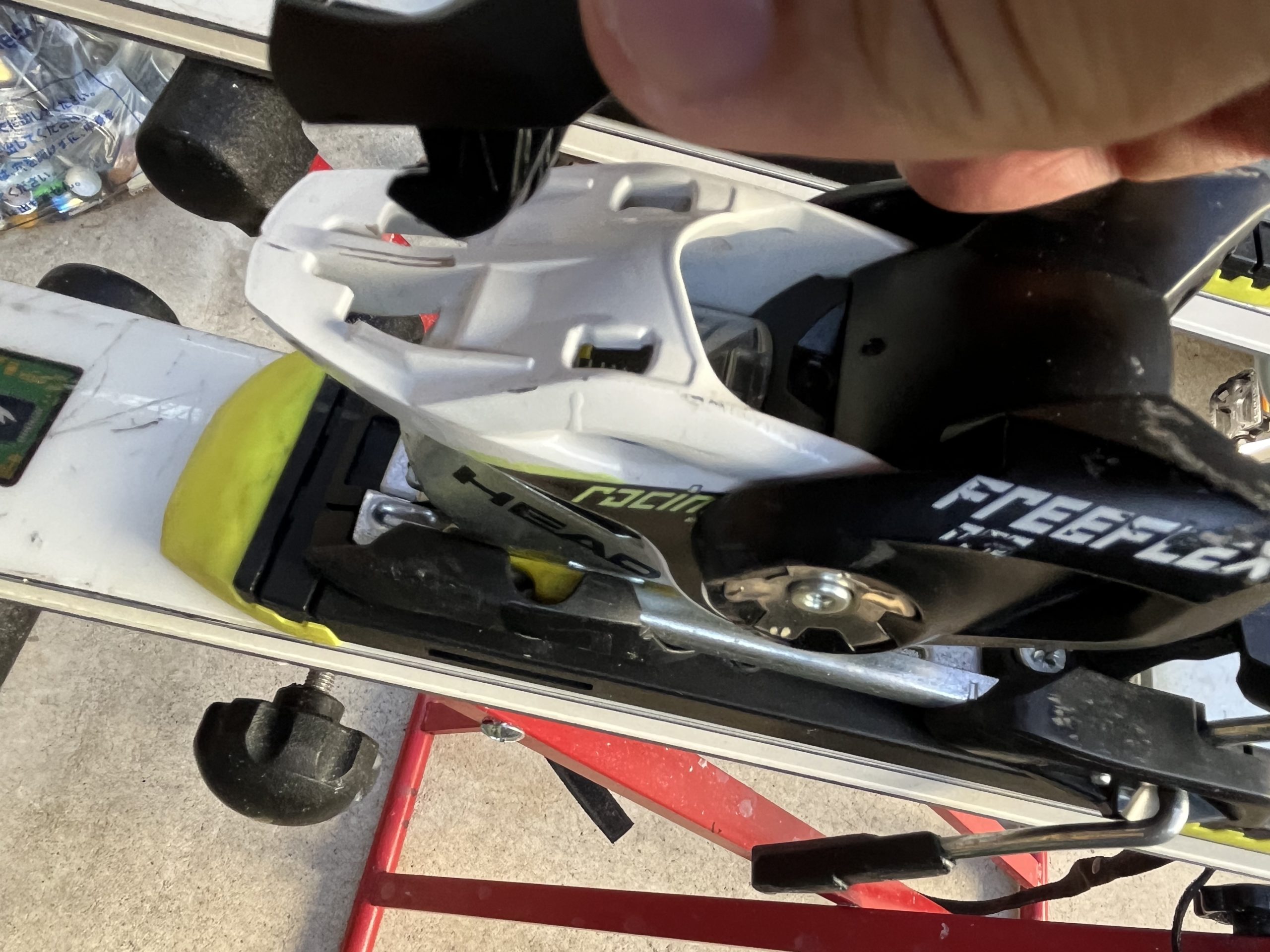 ビンディング単体で修理するよりも,スキーにビンディングがセットされた状態のほうが作業しやすそう。