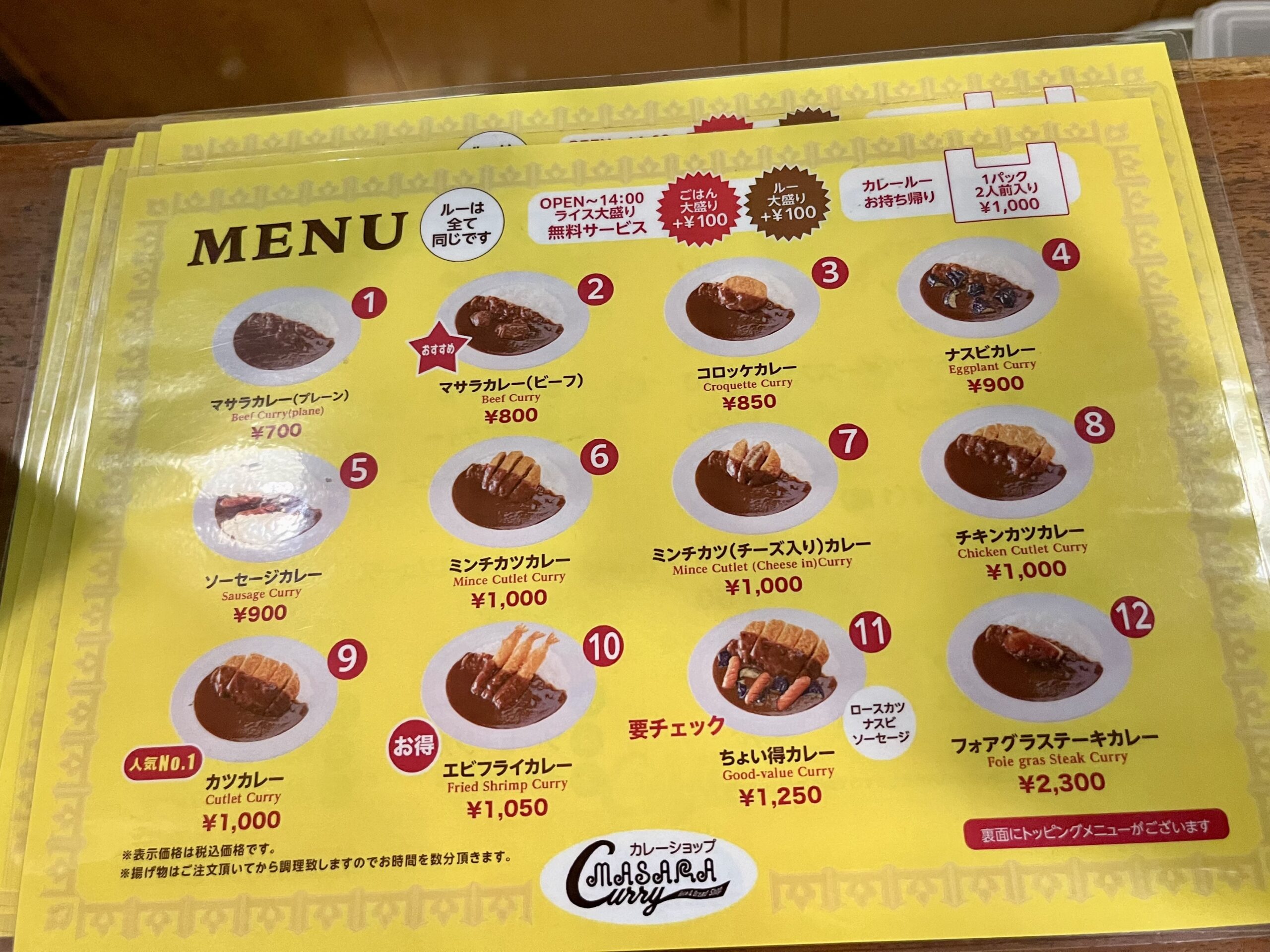 今回はマサラカレー ビーフ(800円)を注文。