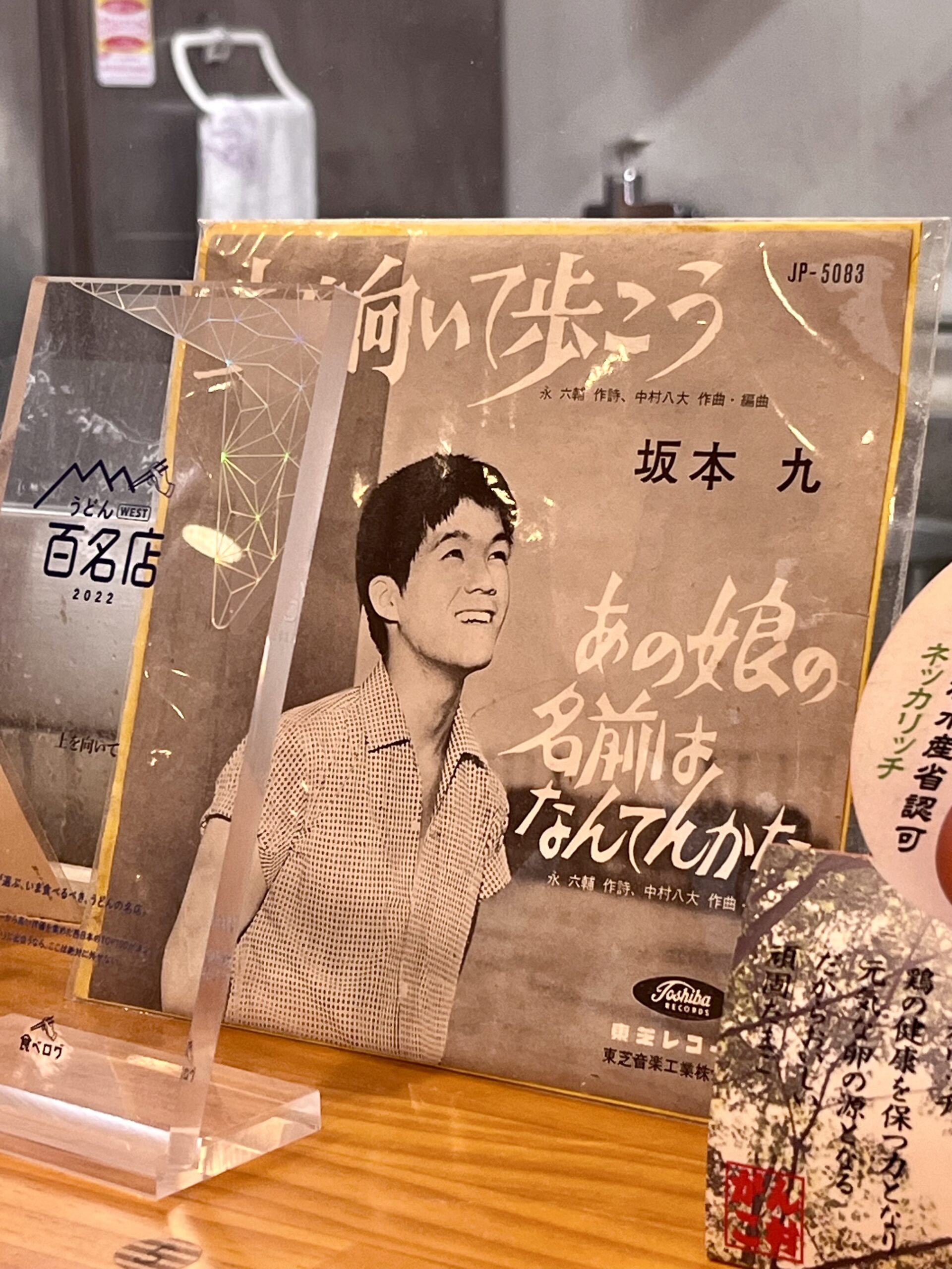 カウンターの上には坂本九さんの「上を向いて歩こう」のレコードが飾られていました。