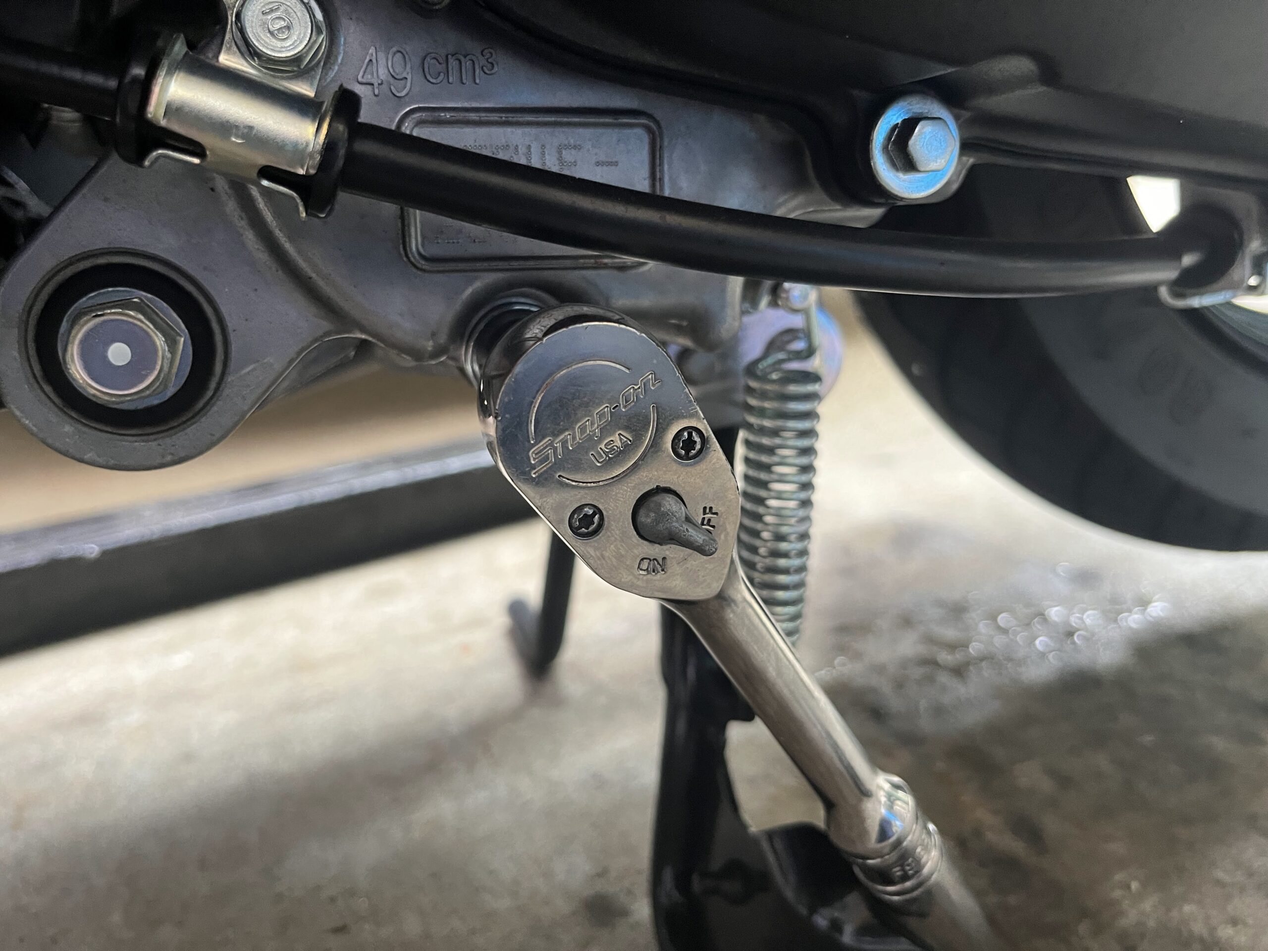 使った工具は、ドレンボルト12mm、ストレーナー17mmのソケットに、一般的なラチェットハンドルで作業しましたが新車のためかどちらもかなり固く締まっていて無理するとボルトを舐めたりしそうだったのでロングハンドル(ブレーカーバー)を使って緩めました。