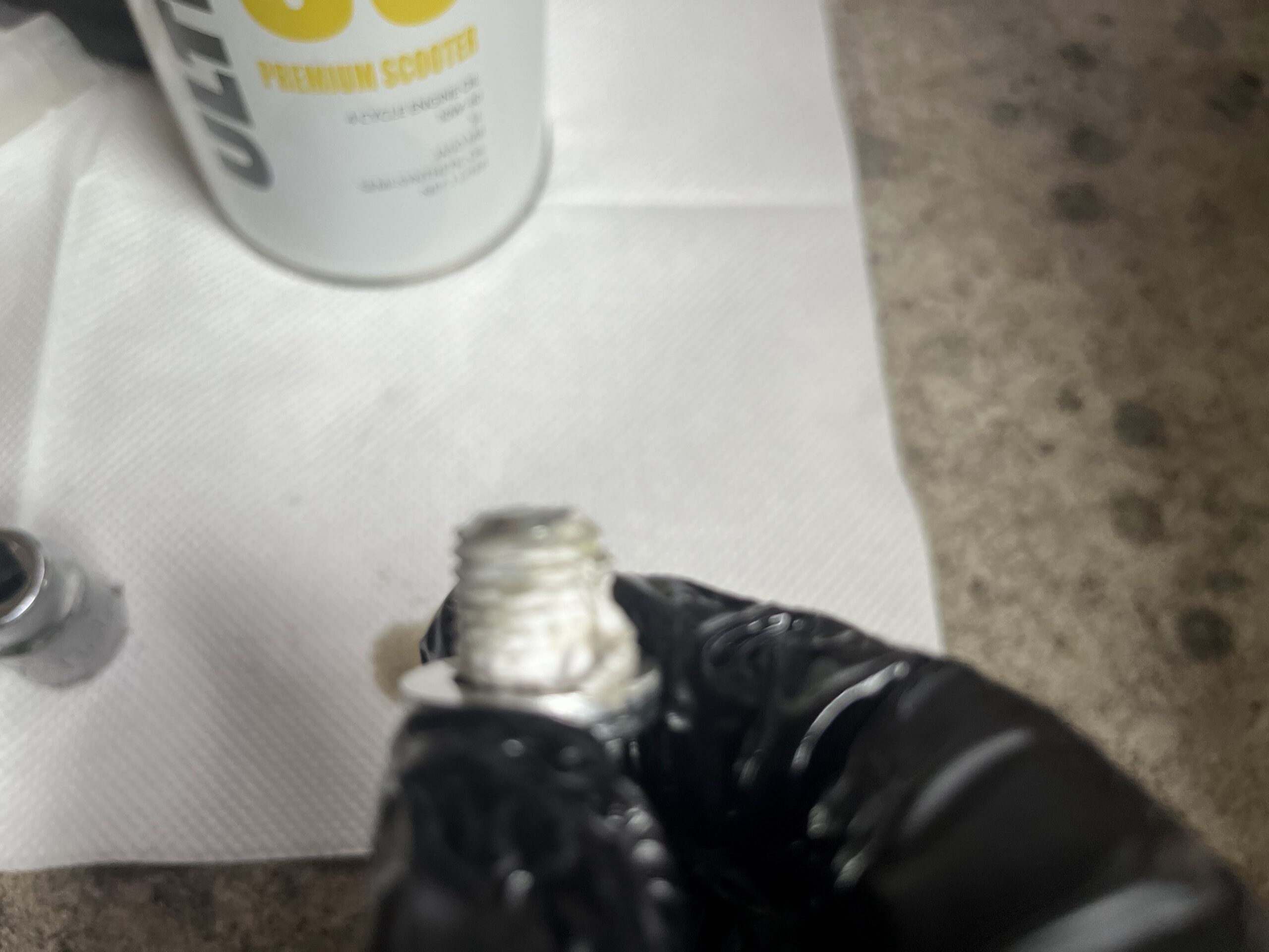 本来はドレンボルトのガスケット(ワッシャー)を交換しなくてはなりませんが今回入手することができなかったのでねじ山部分に水道用のシールテープを2、3回巻きつけてオイル漏れ対策。