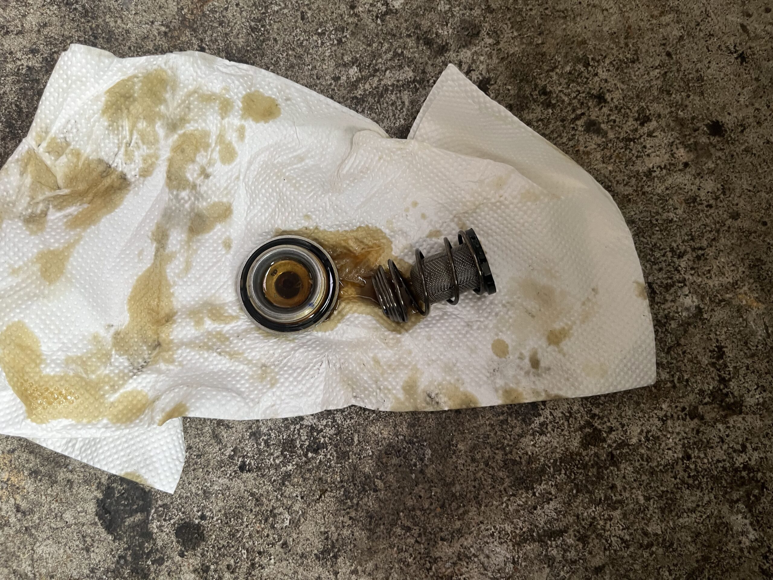 今回はまだそれほど距離を走っていないので入っていたエンジンオイルはあまり劣化していないようですがストレーナに予想以上に金属粉が溜まっていたので精神衛生上作業してよかった。