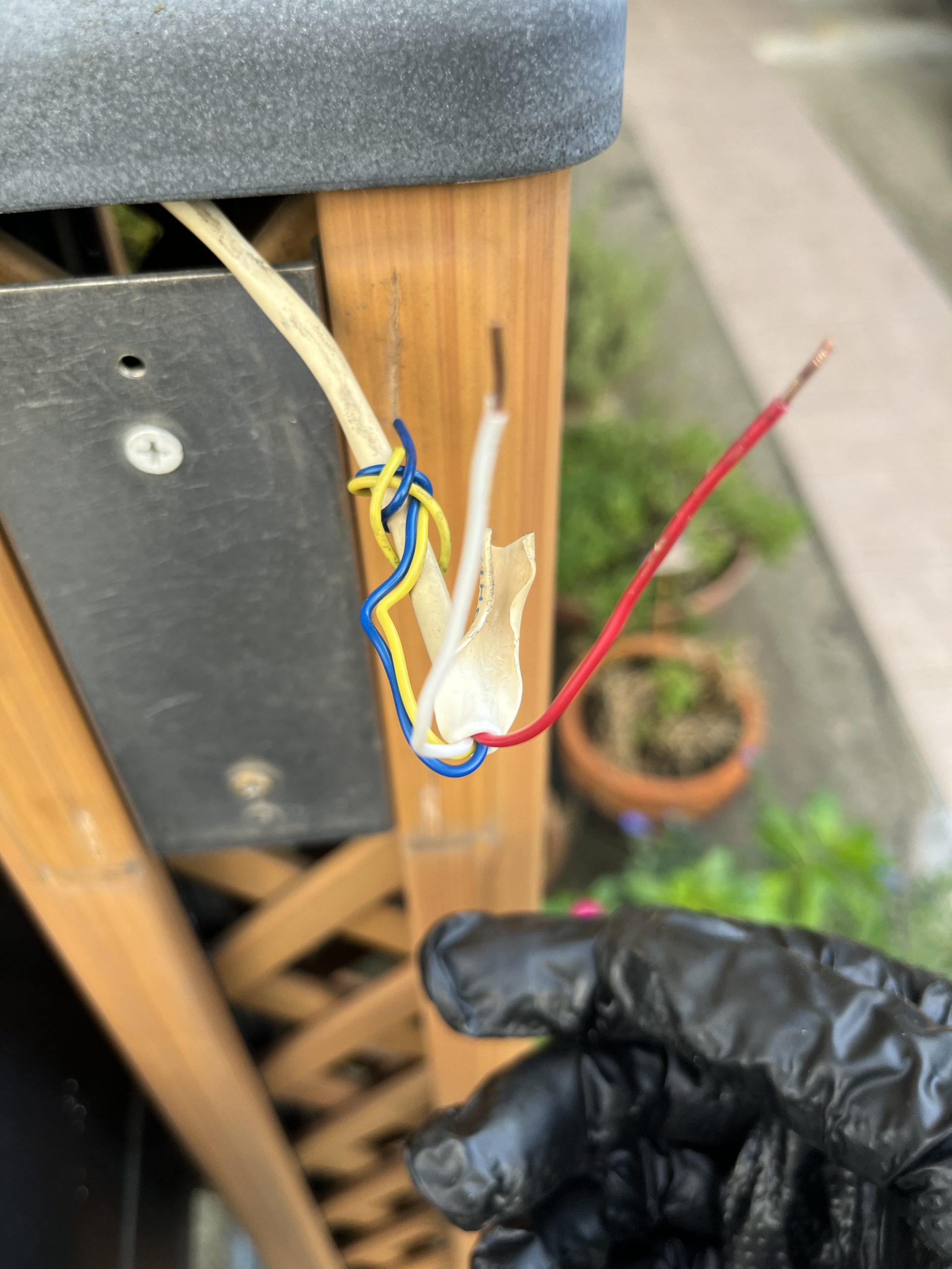 劣化した部分を切り取って、元の配線の被膜の中で保護されていた部分を引っ張り出して先端の被膜を切り取って。