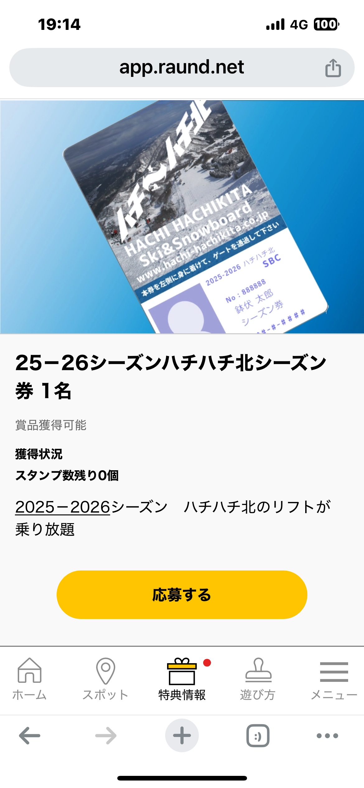 2025/2026シーズンの1日券が当たるかもしれない抽選に応募できます。