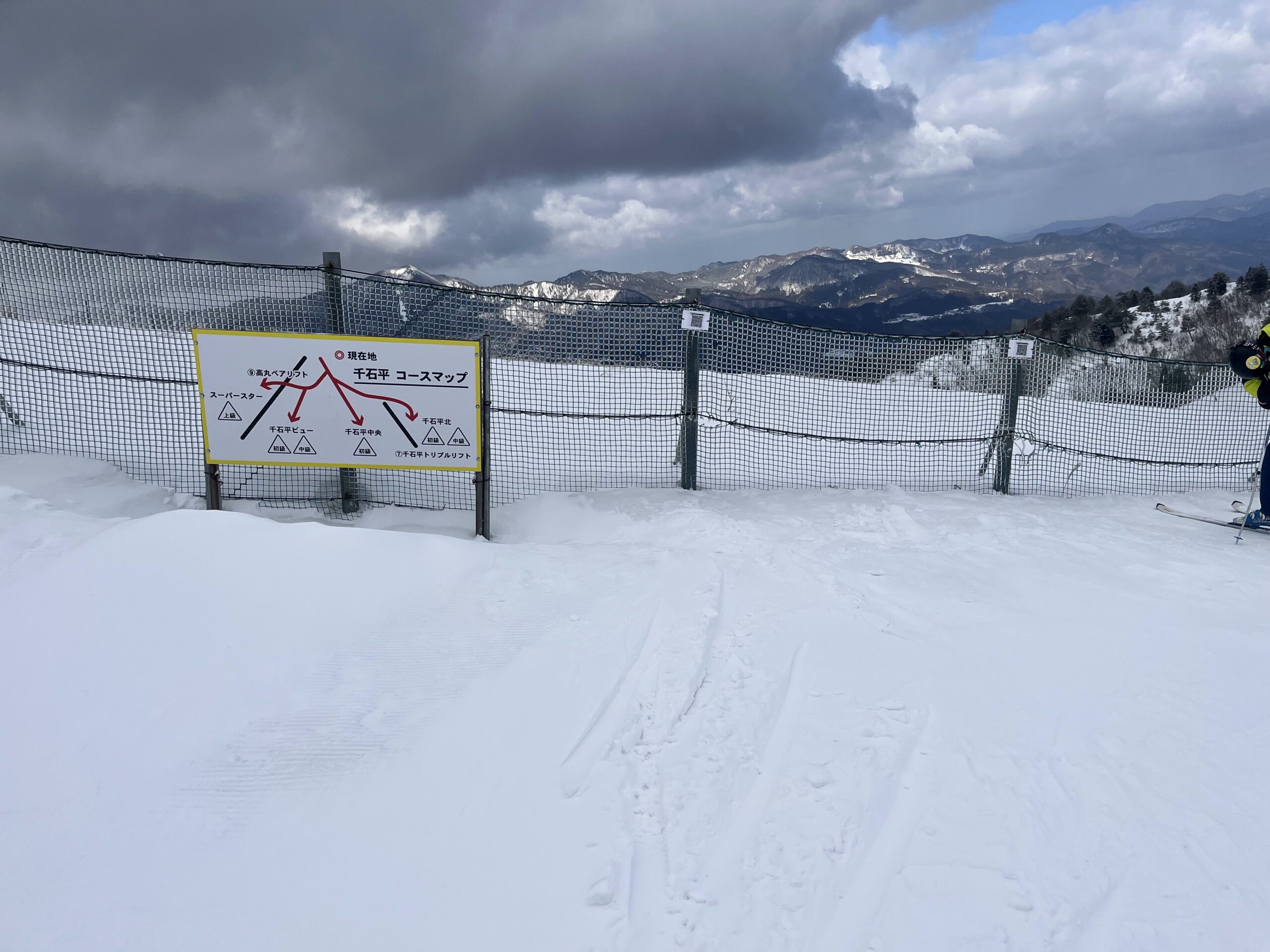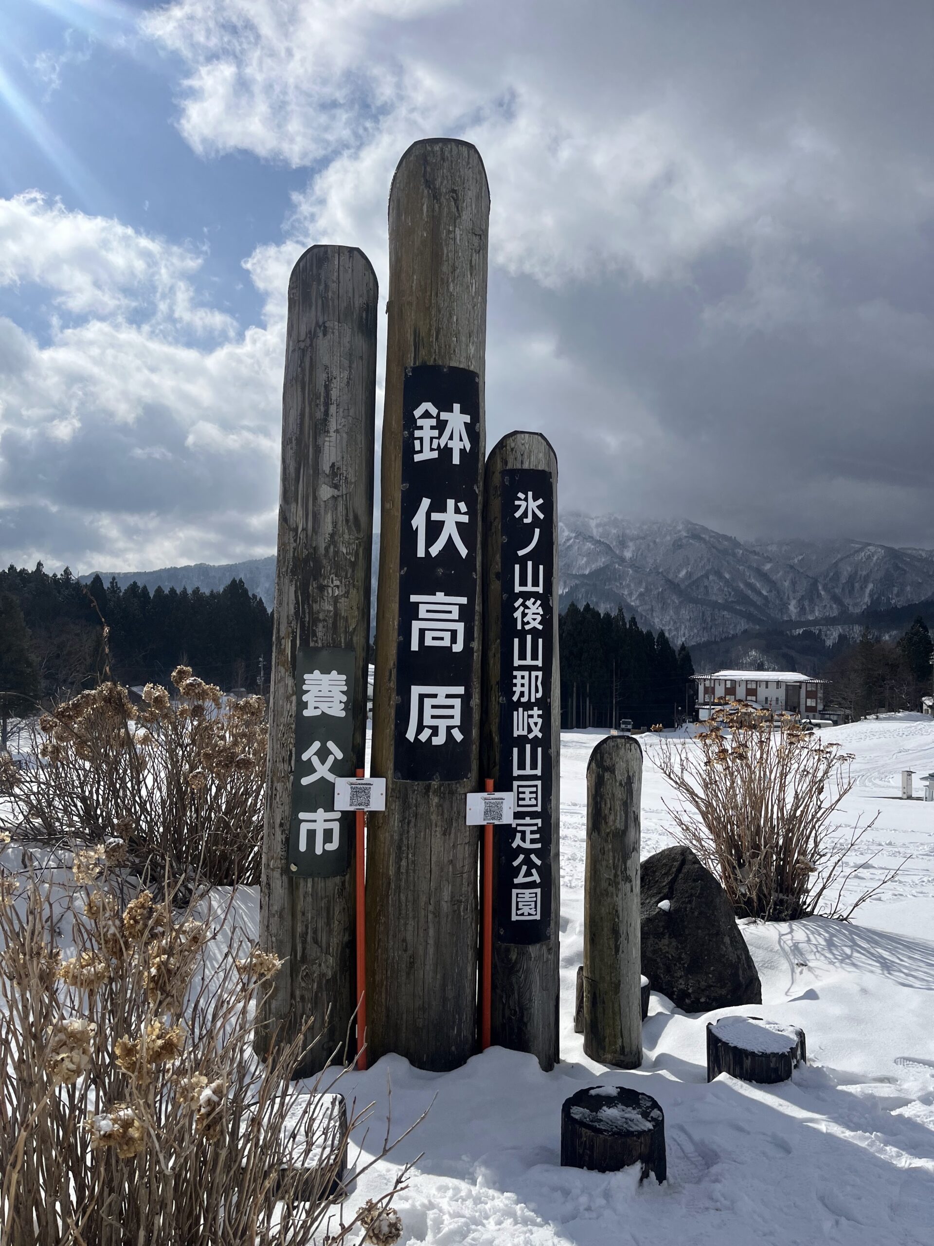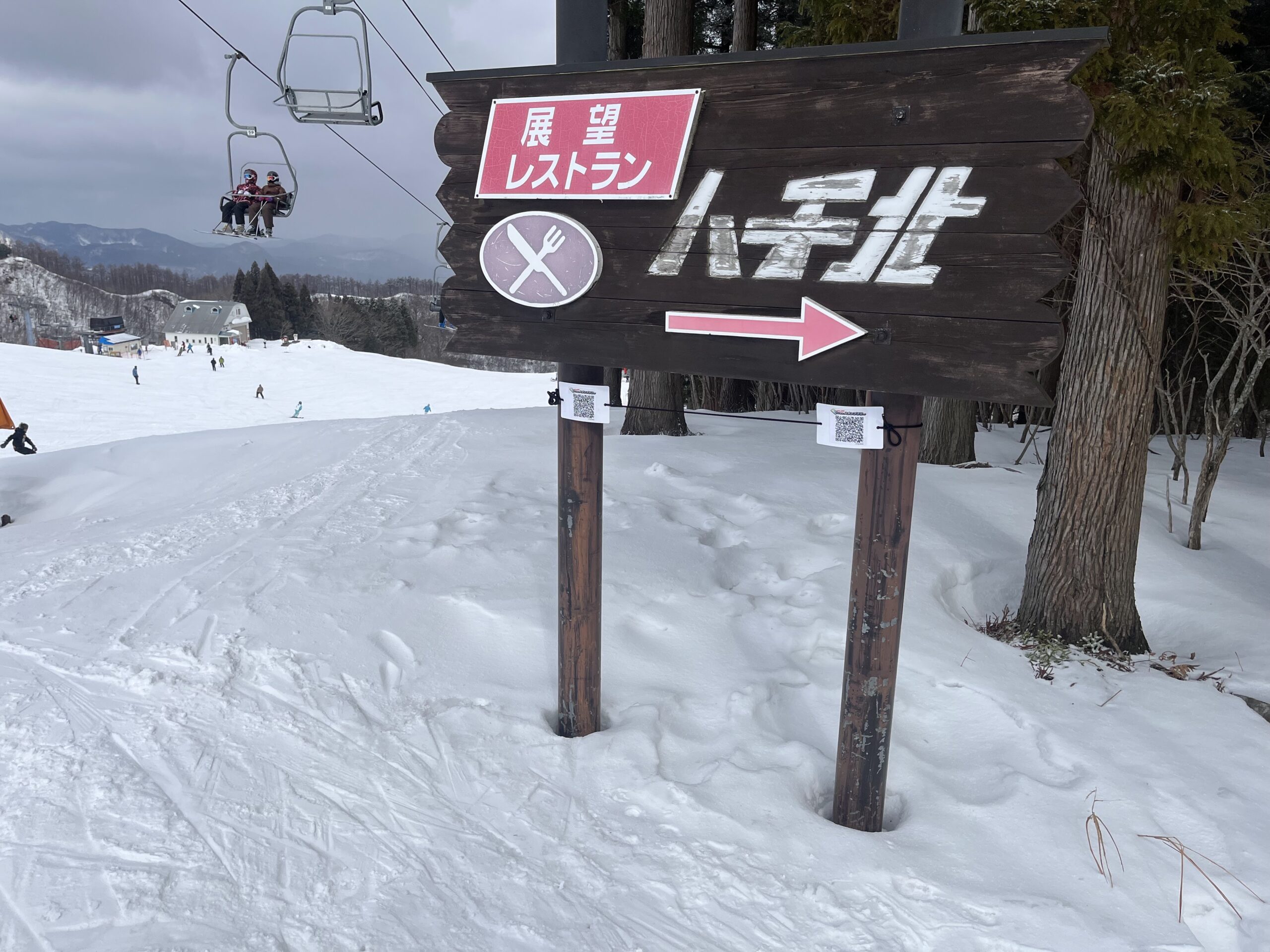 まずはハチ北高原の中央クワッドリフトを降りたところになる「クリスタKAZAO」でトイレを借りるついでにテラスのQRコードを読み込み。