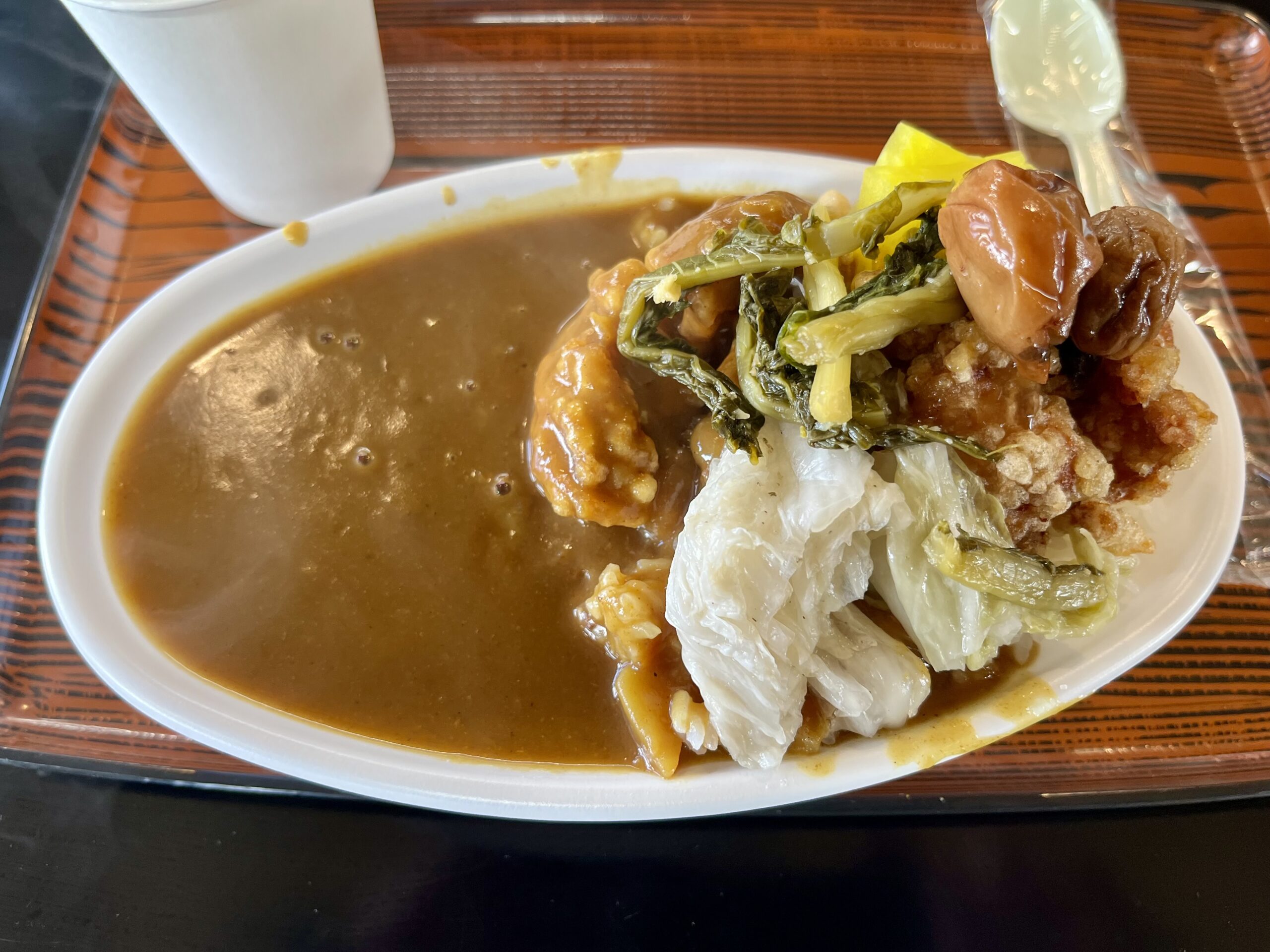 チキンカレーとはいっても,普通のカレーに唐揚げがトッピングされているものですが美味しくてボリュームがあります。