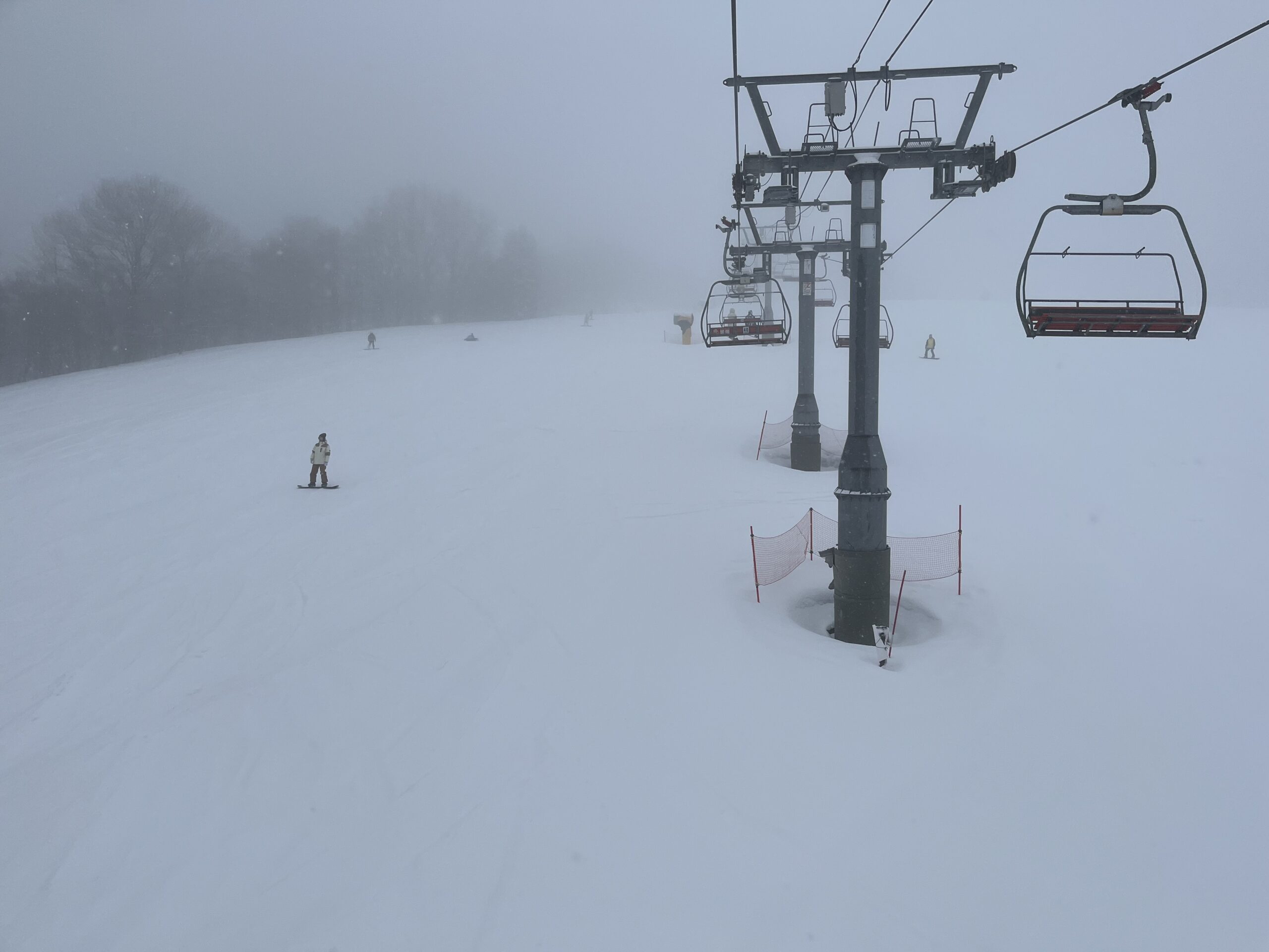 雪が雨にかわり、ずぶ濡れになったのですがさすが平日、リフト待ちも皆無で短時間のわりにたくさん滑ることができました。
