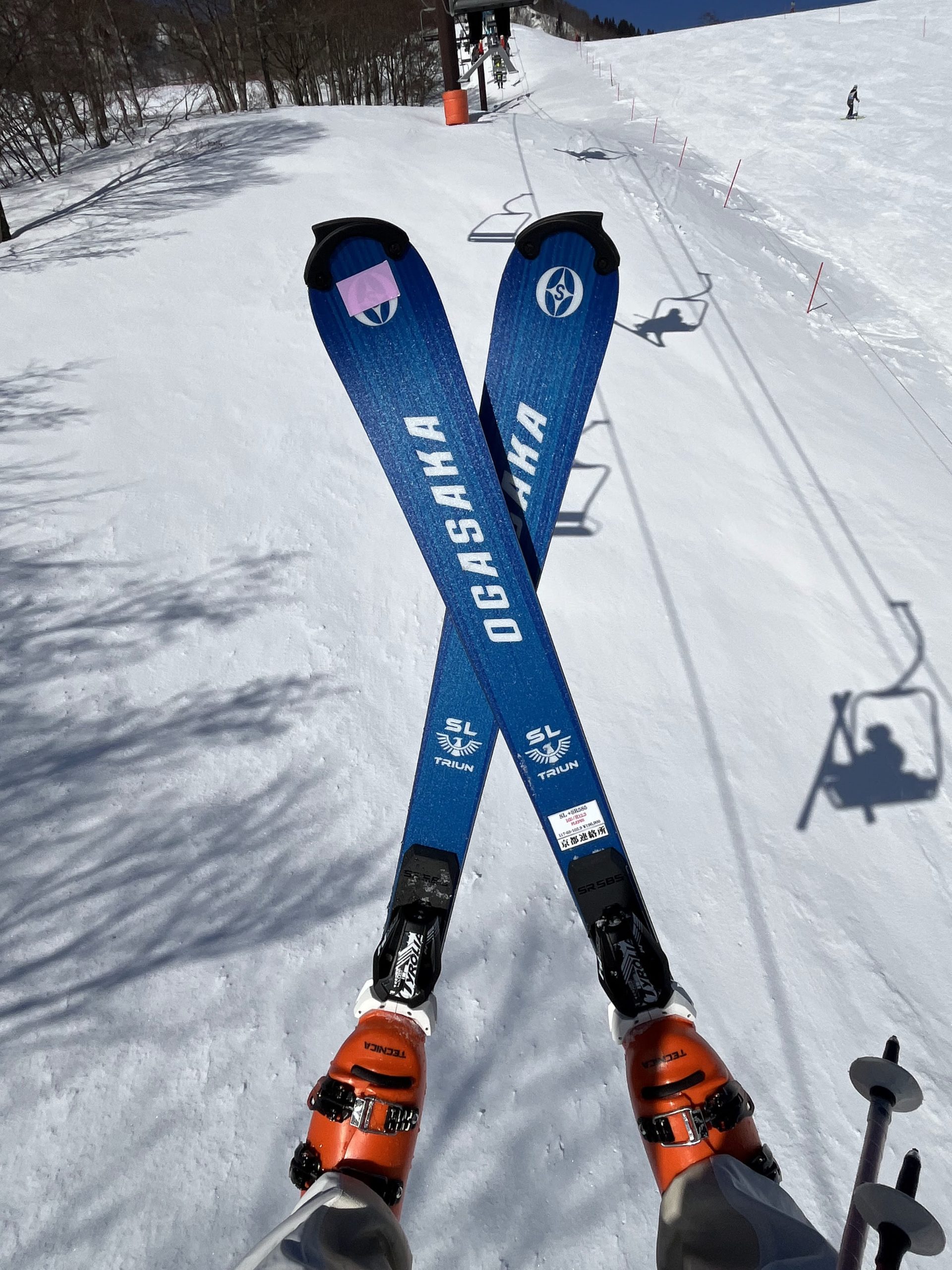 オガサカの小回り用スキーの定番TC-Sに続いて昨年試乗して良い印象だったスラローム用スキー、トライアンSLにも試乗。