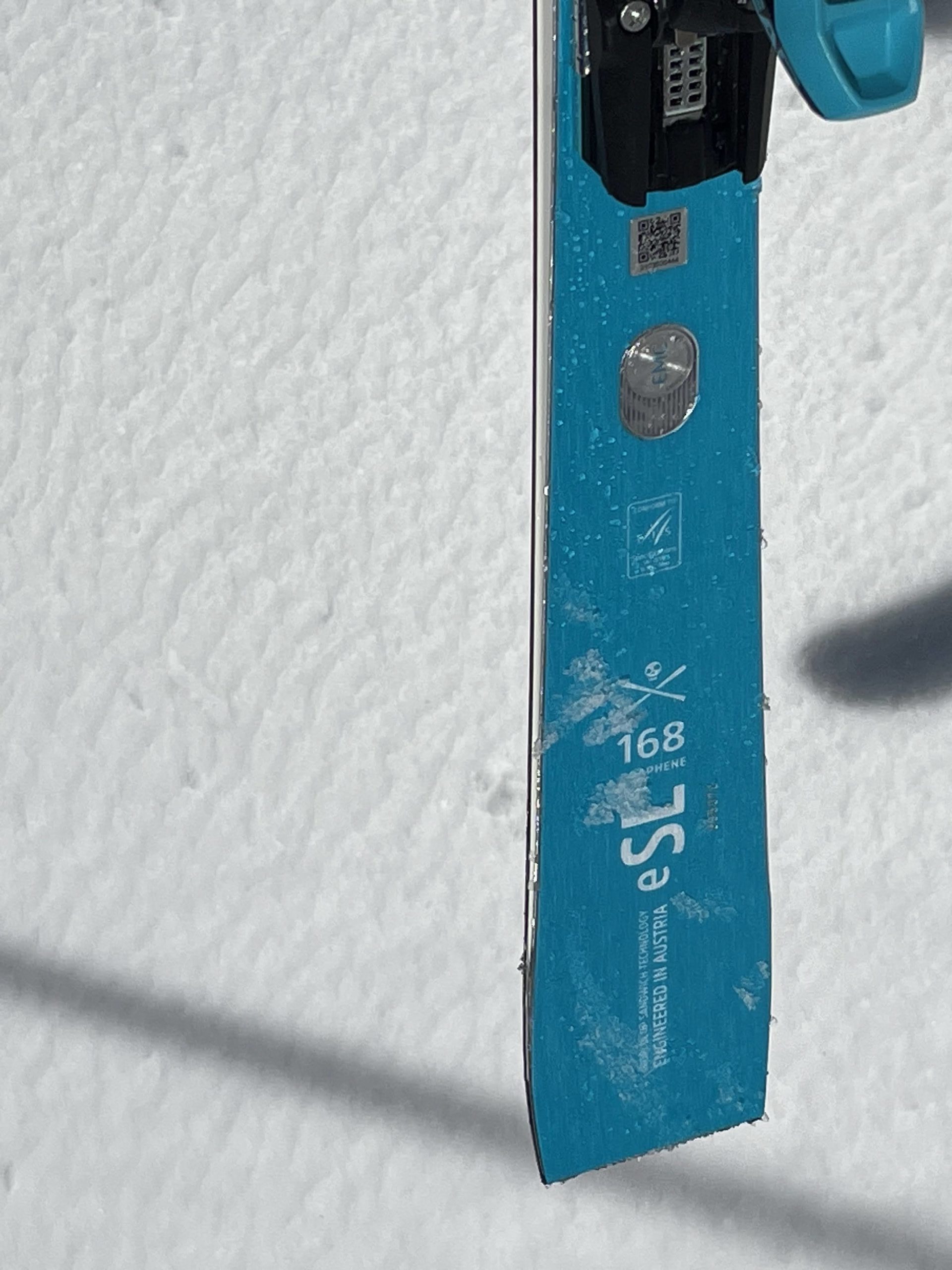 同じように165cmと170cmの長さ違いの試乗機が用意されていたサロモンS/RACE SL PROでは165cmのほうが170cmよりも安定感がよかったのですが、これはセットされているビンディングの差だと思われる。
