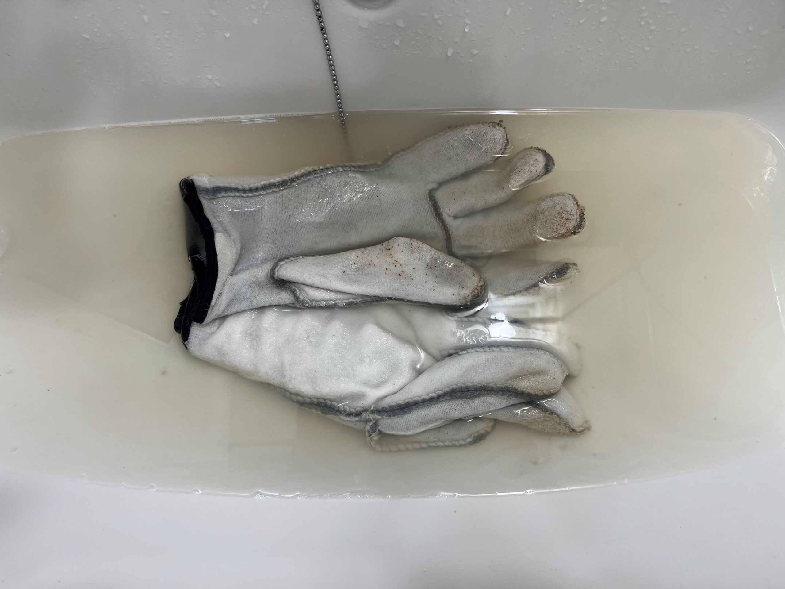スキーシーズンの後片付けその1として,グローブを洗ってオイルを塗りました。