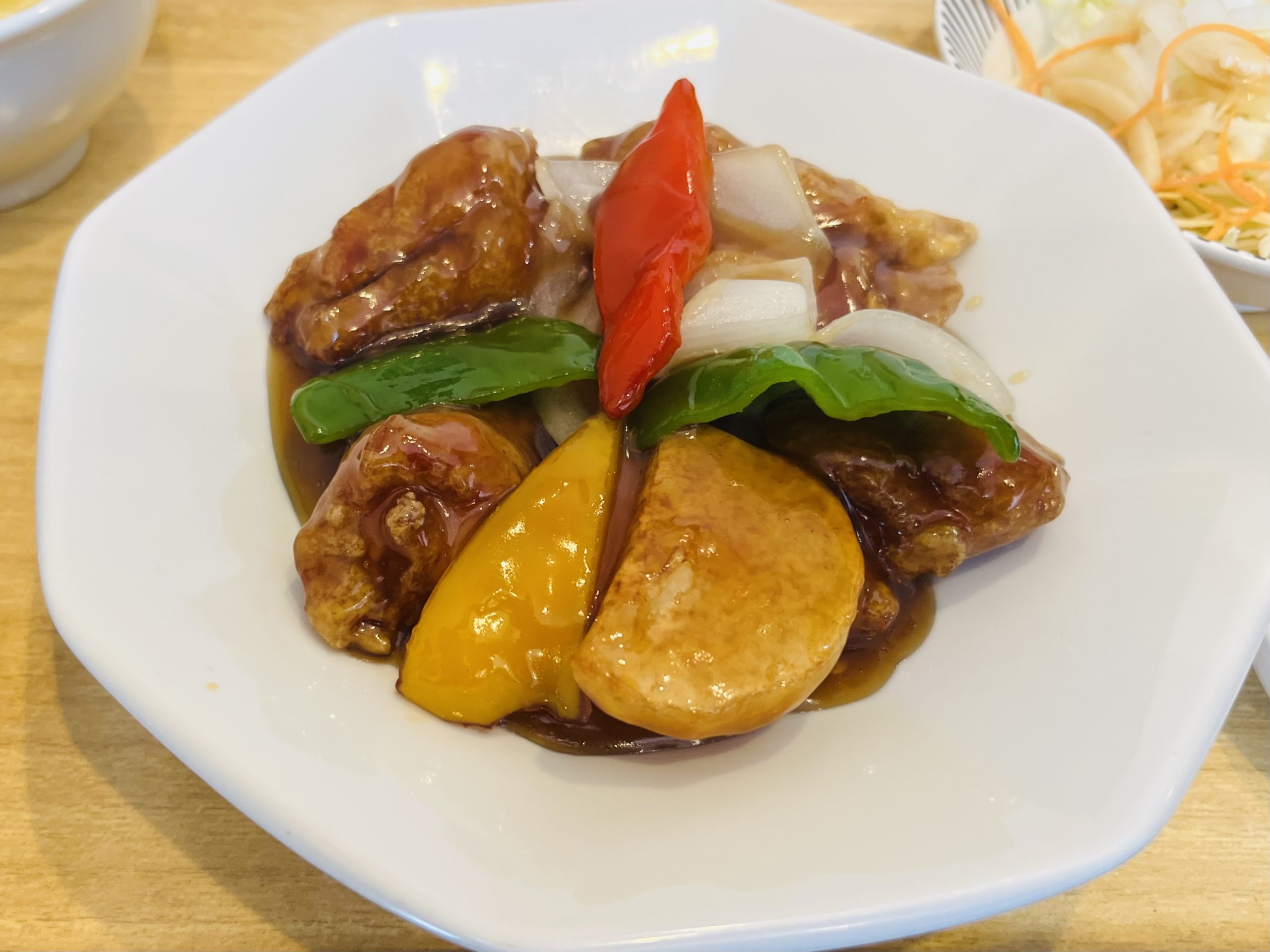 この日の酢豚にはパプリカと新玉ねぎ、じゃがいもが入っていました。