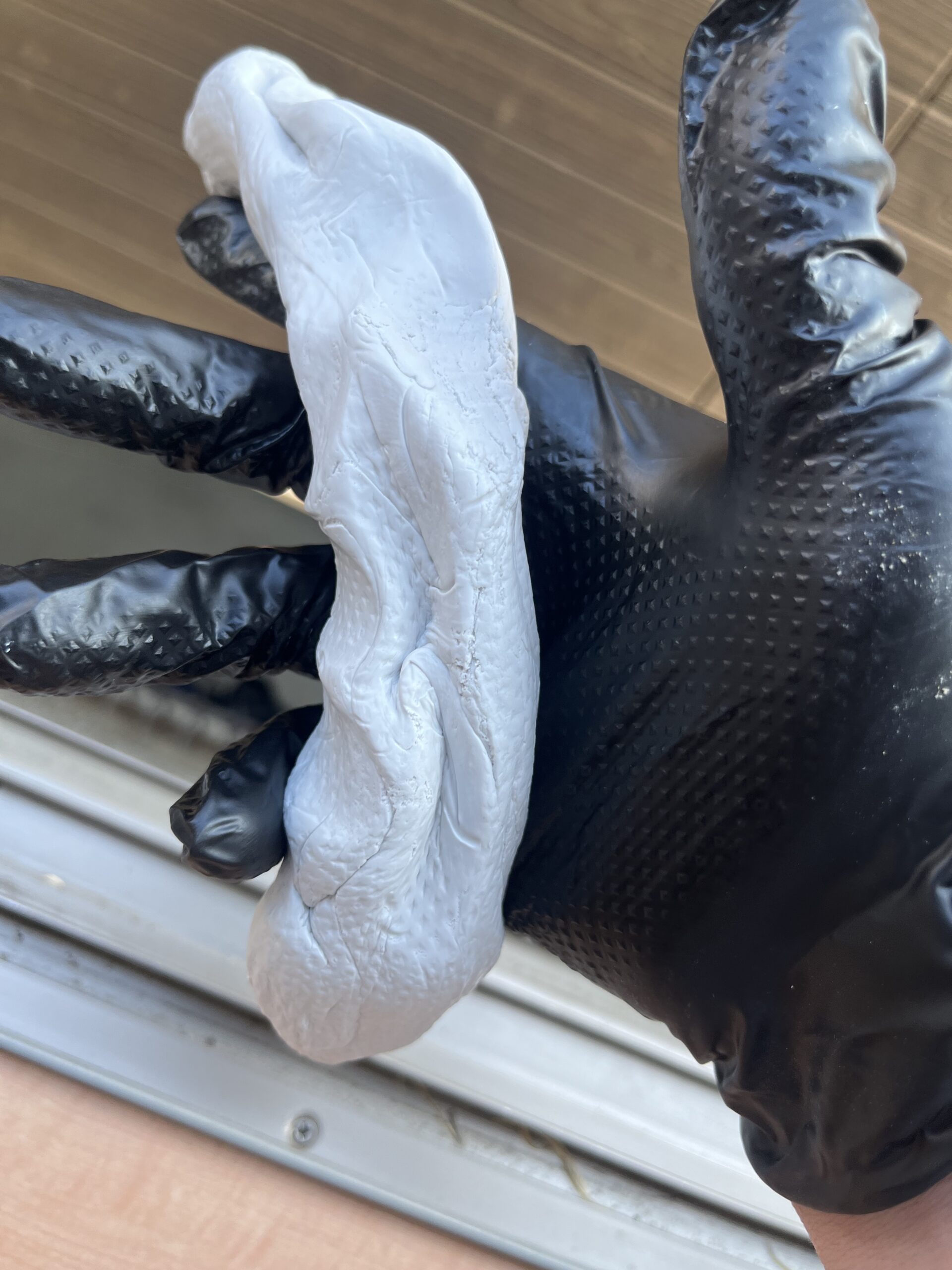 ネットで調べるとエアコン配管に使うパテ,5年くらいを目安に劣化してしまうそうです。