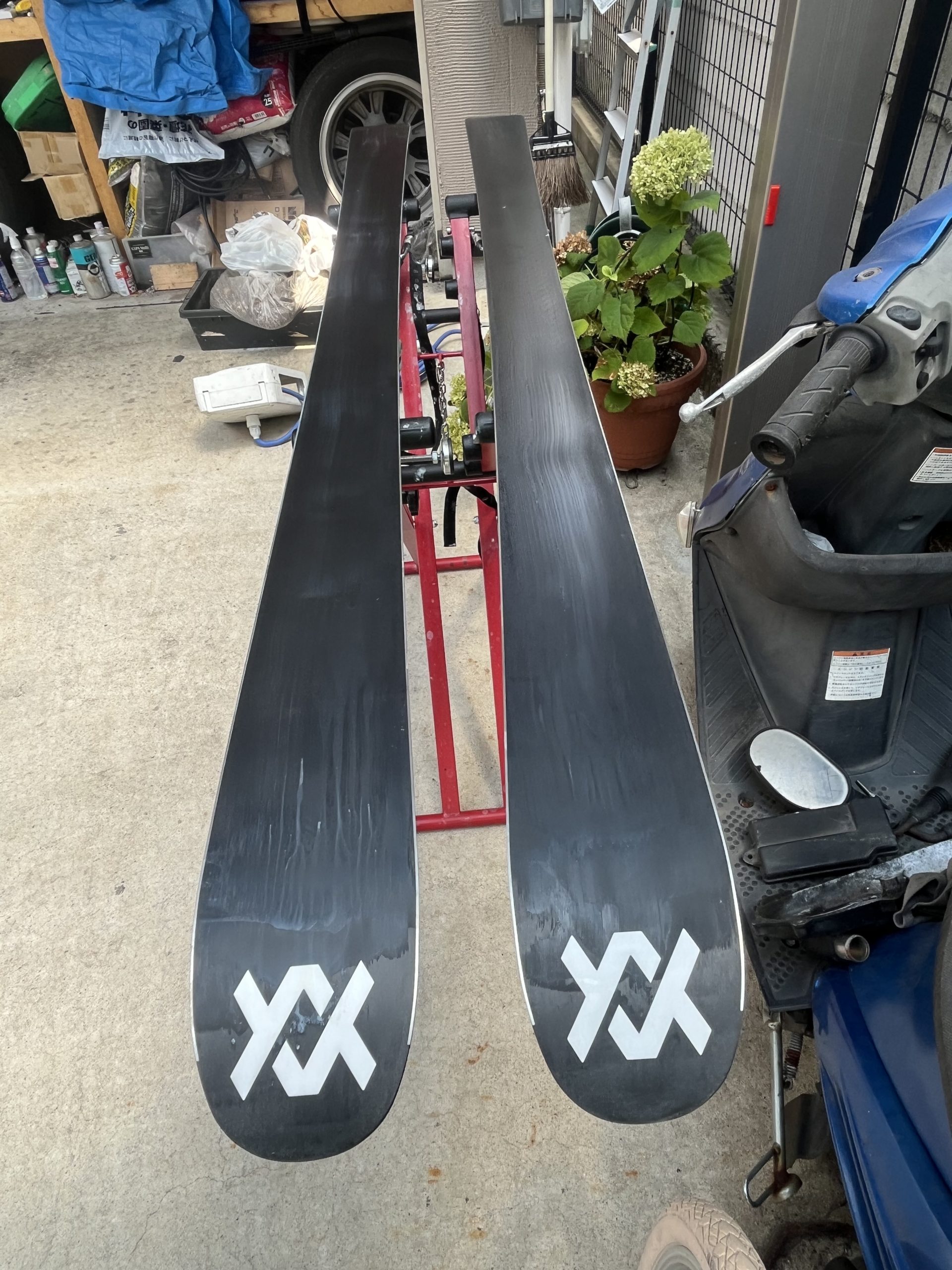 2025/2026年スキーシーズンに使う予定のスキー,これにてそれぞれ2ラウンドずつサーモワックスの施工ができたので,あとはワックスを剥がすだけ。
