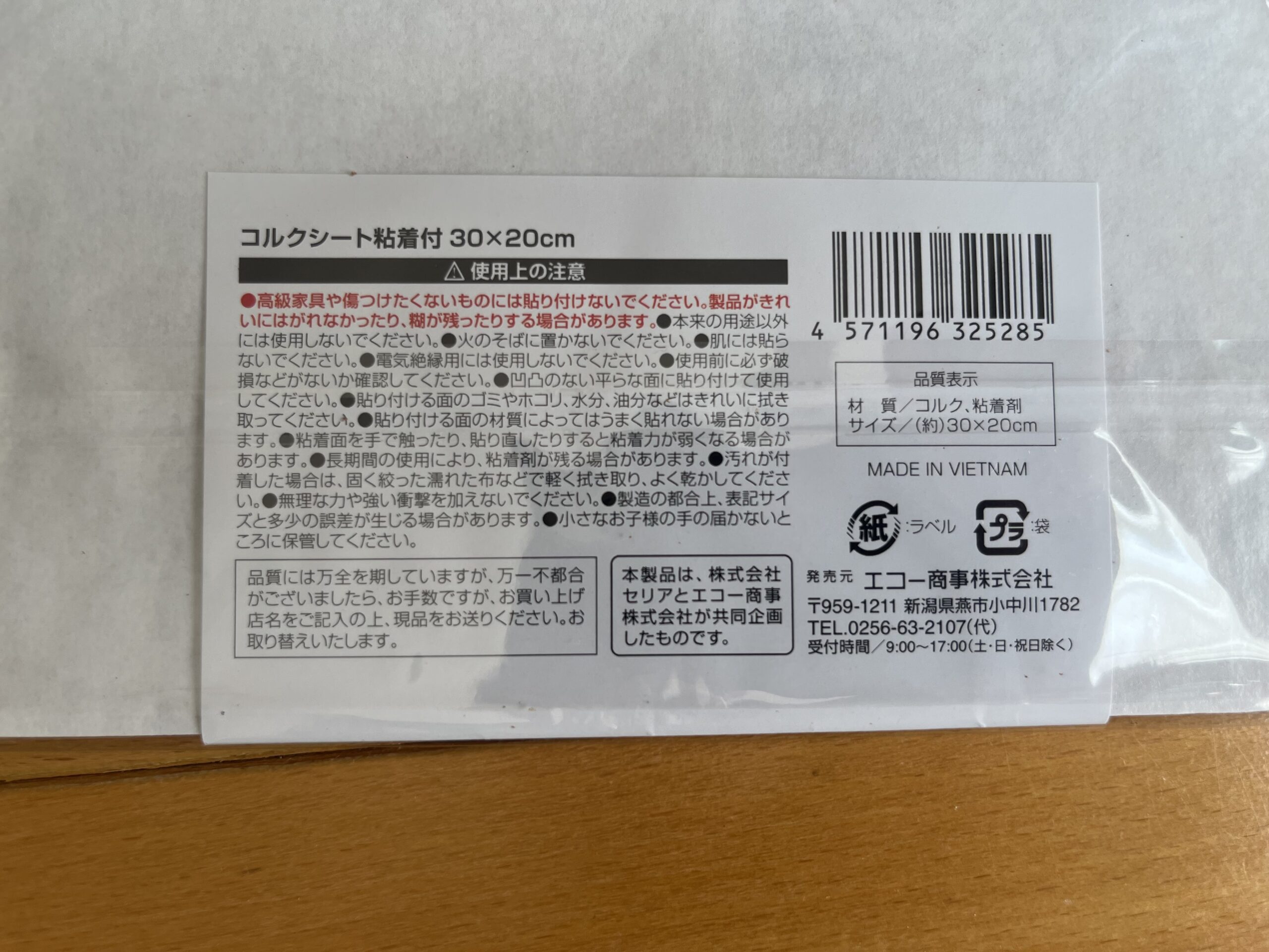セリアのコルクシートは裏側に粘着シートが貼り付けられていますがインナーブーツへの貼り付けでは剥がれてしまうので