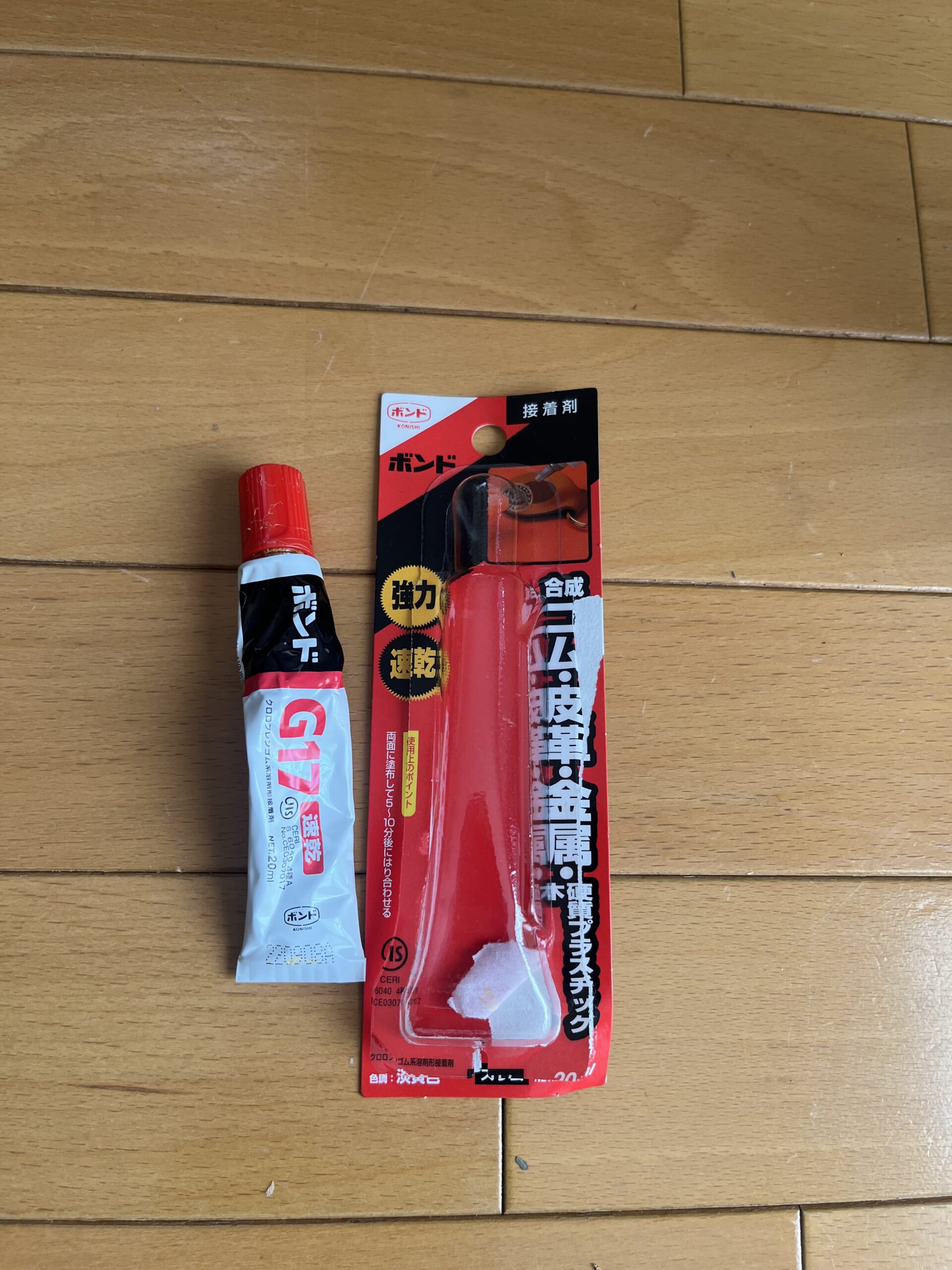 定番のボンド「G17」を薄く塗ってしっかり貼り付けて