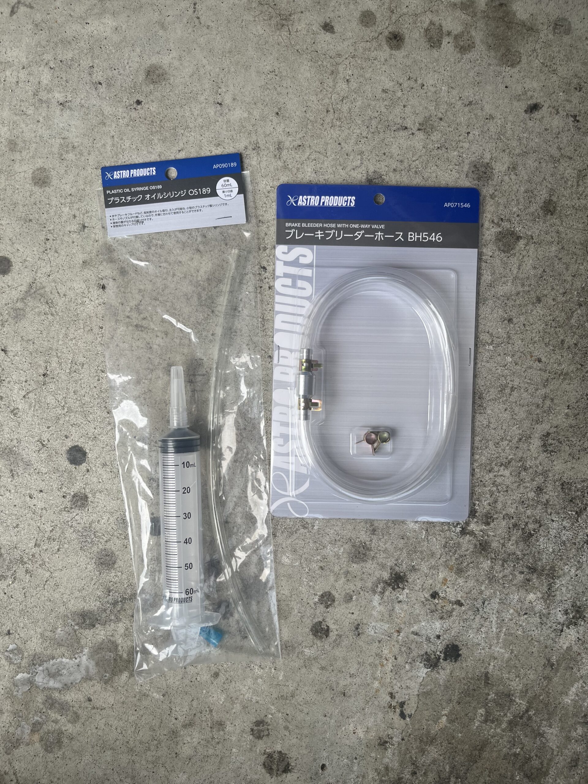 そして、古いブレーキフルードの抜き取りに「シリンジ」、そしてブレーキ配管の中の古いブレーキフルードを抜き取るために「ワンウェイバルブ」を購入。