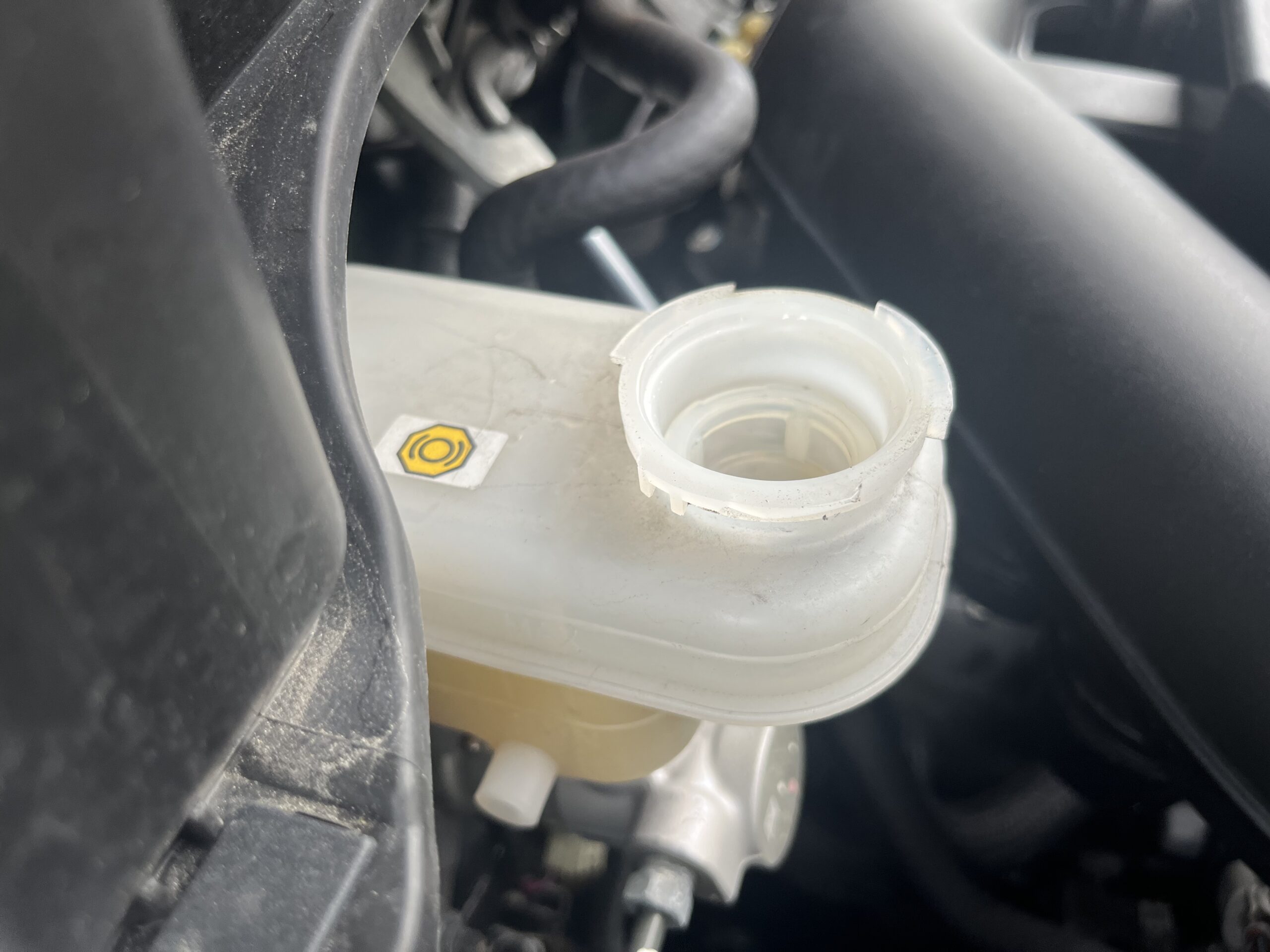 ブレーキフルードのリザバータンクの蓋を開けて