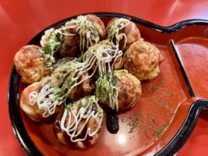 外はカリッと,中はモチっとしていてとても美味しいたこ焼き。