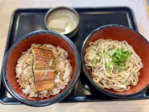 注文した日替わりセットのうな丼とそば,すぐに提供されました。
