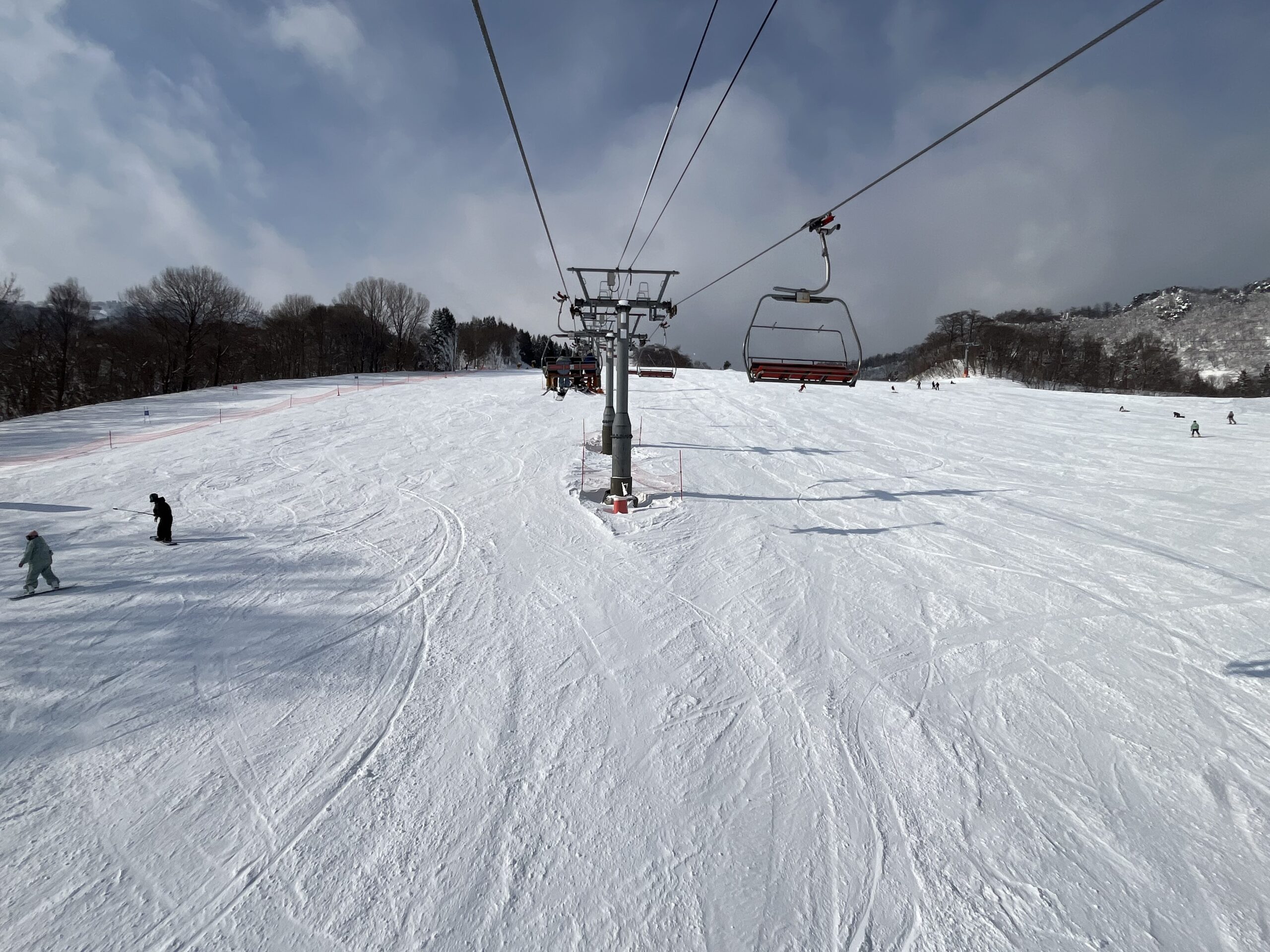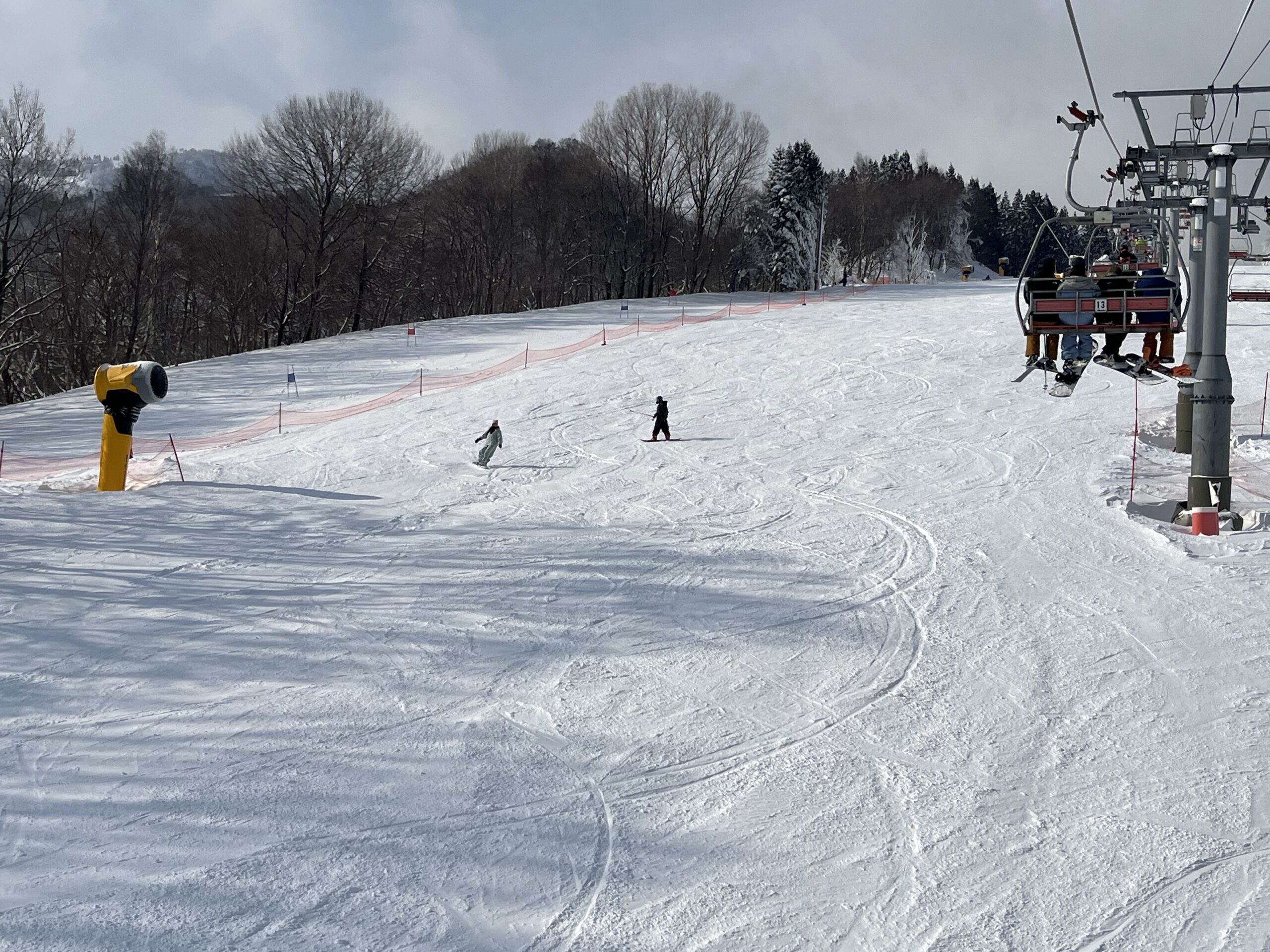 しばらく滑って飽きてきたところでアルペンコース急斜面を経由して中央ゲレンデへ降り、今シーズン初めて野間ゲレンデまで。