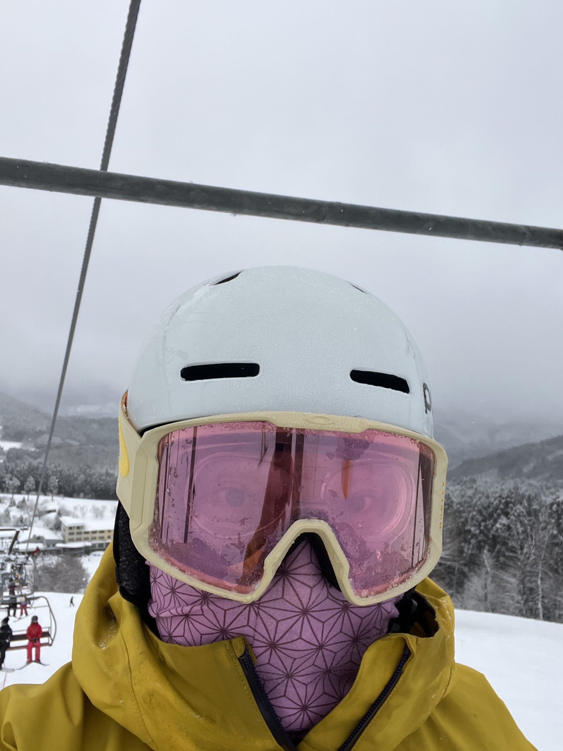 天候にあわせてゴーグルも明るい「プリズムハイピンク」をチョイスしましたが、それでもコブ斜面ではコブの形状が見づらくてたいへん苦戦しました。