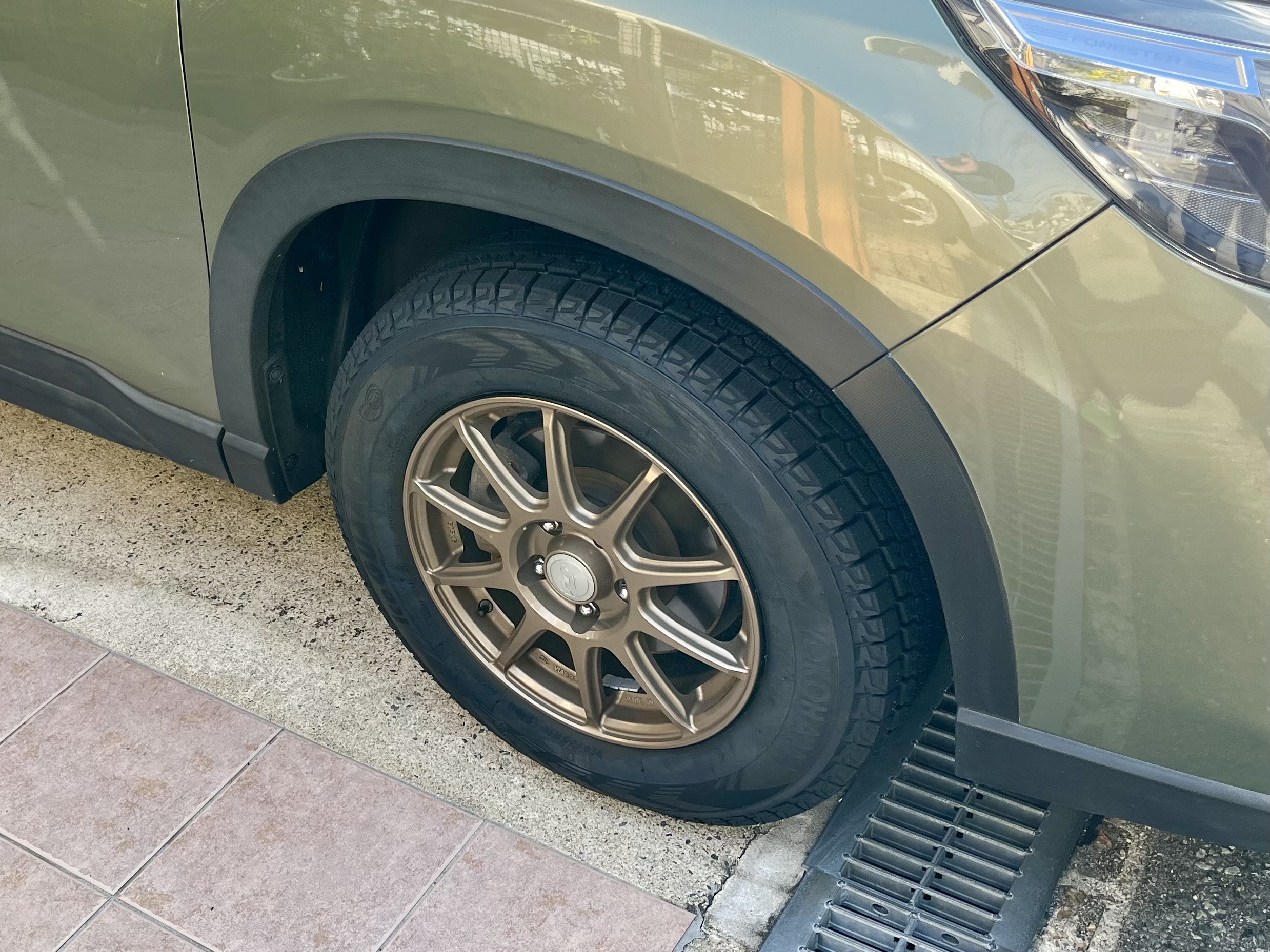 ワタクシはフォレスターの純正サイズの18インチから16インチまでタイヤサイズを下げているのでこの作業価格ですが,16インチと17インチ以上でタイヤ組み換えや交換の作業工賃が変わるケースがほとんどで,17インチのタイヤで今回と同じ内容の作業をお願いすると13640円と大幅にアップ。