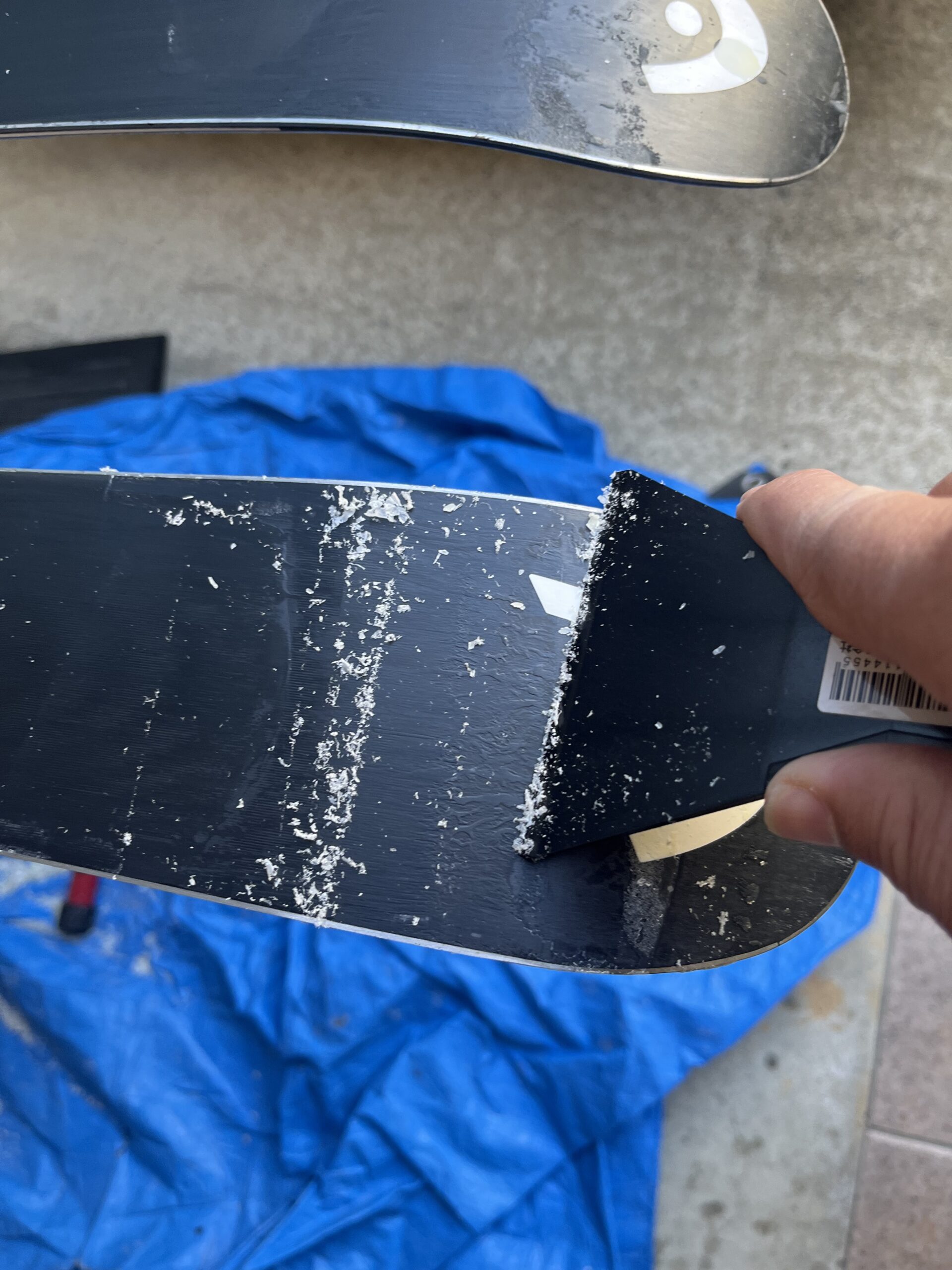 やはりスキー用のスクレーパーの方がしっかり削れます。