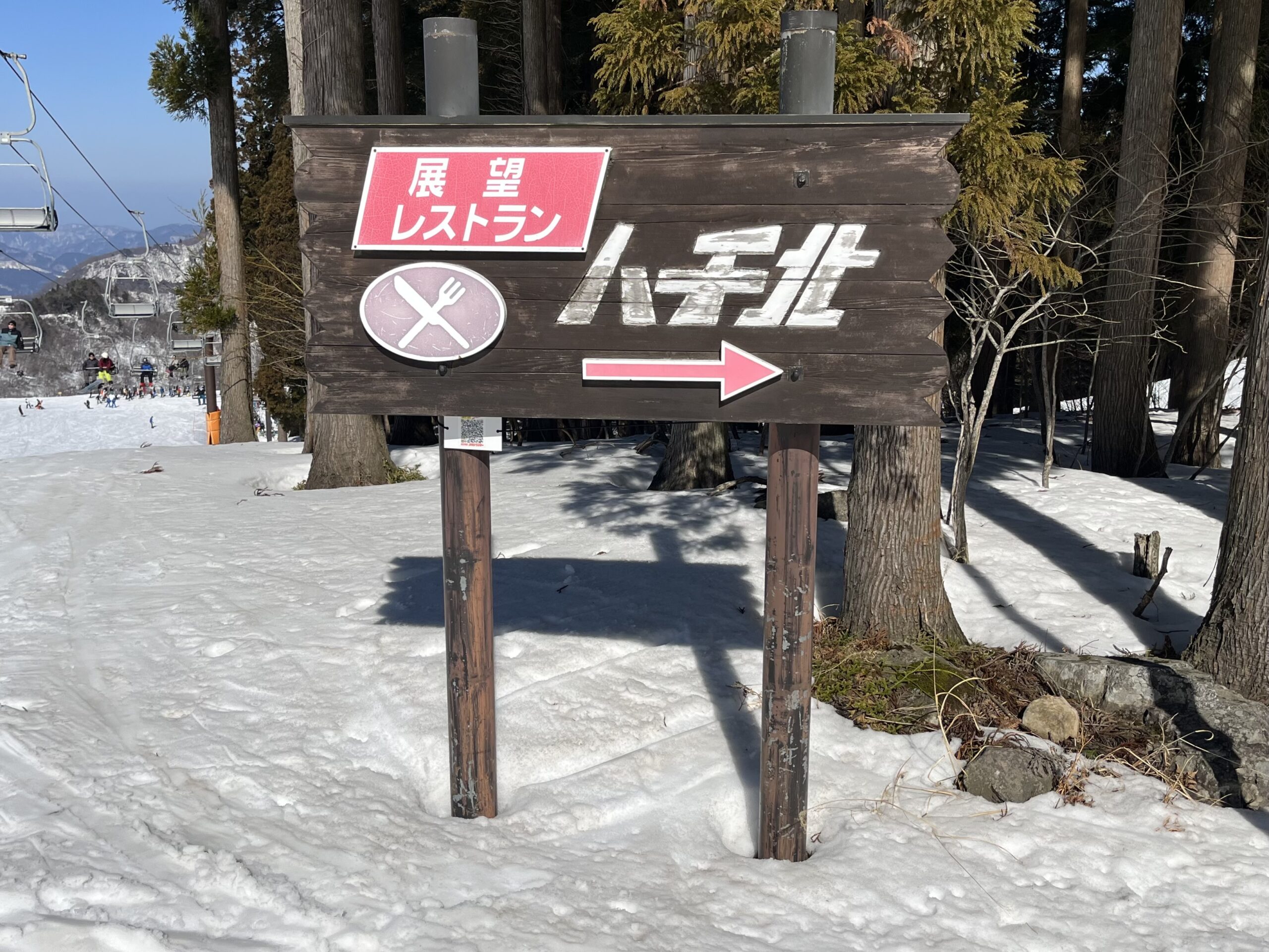 昨年と同じ,パノラマゲレンデ脇の展望レストランハチ北の看板にデジタルスタンプラリーのQRコードが仕込まれているのを見つけました。