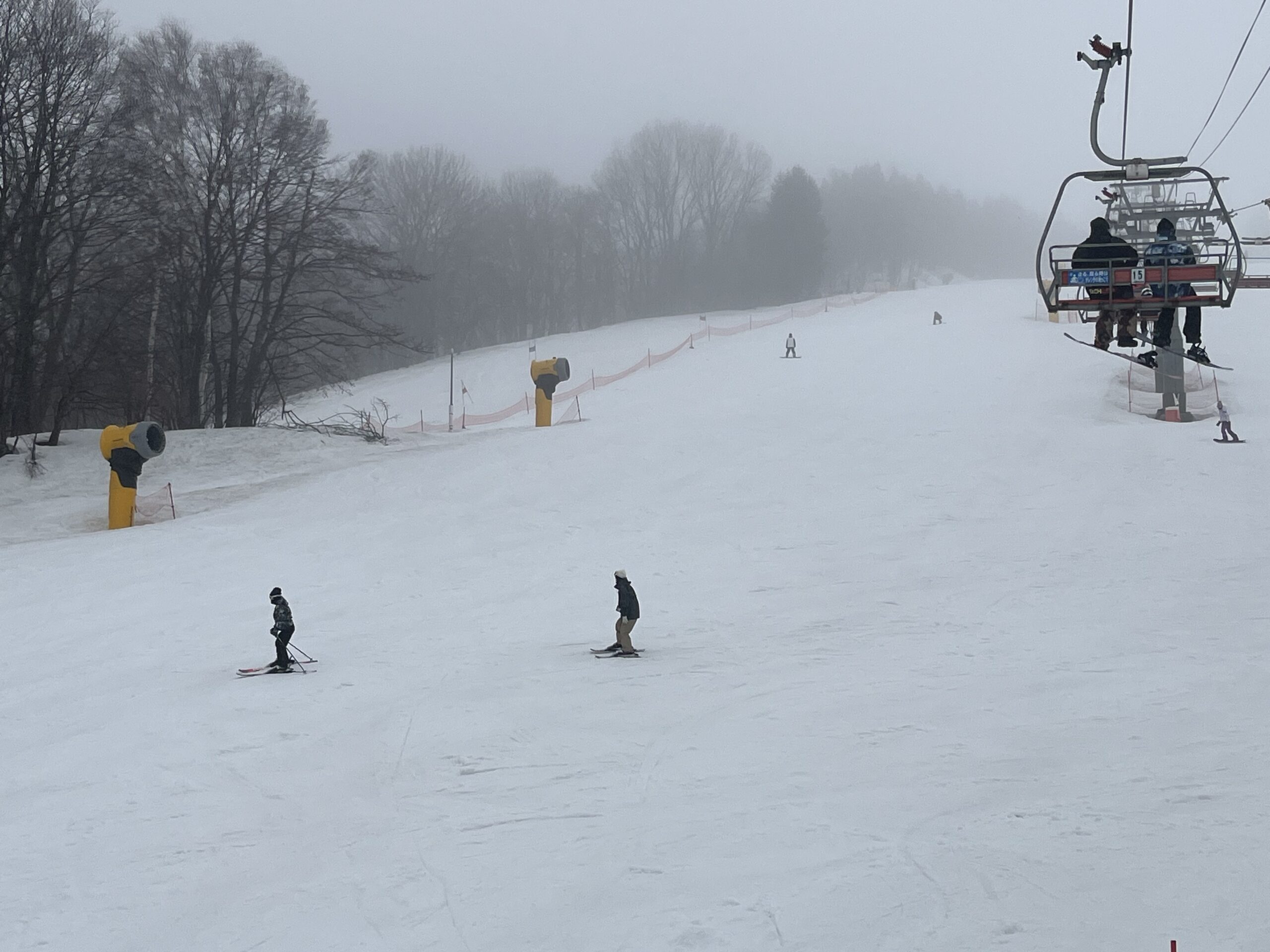 そのうえ霧も出ていて上部ゲレンデは視界が悪そう。