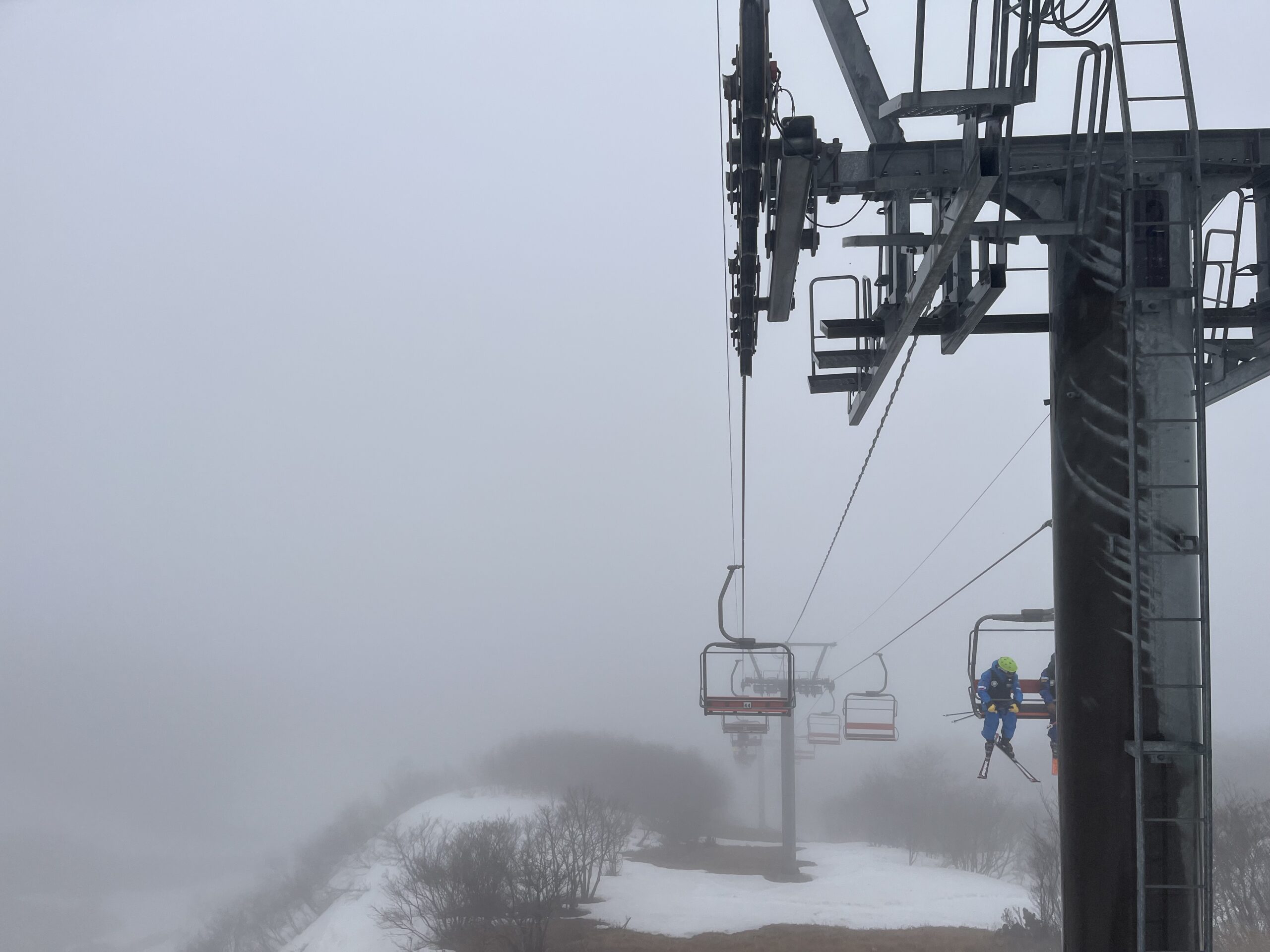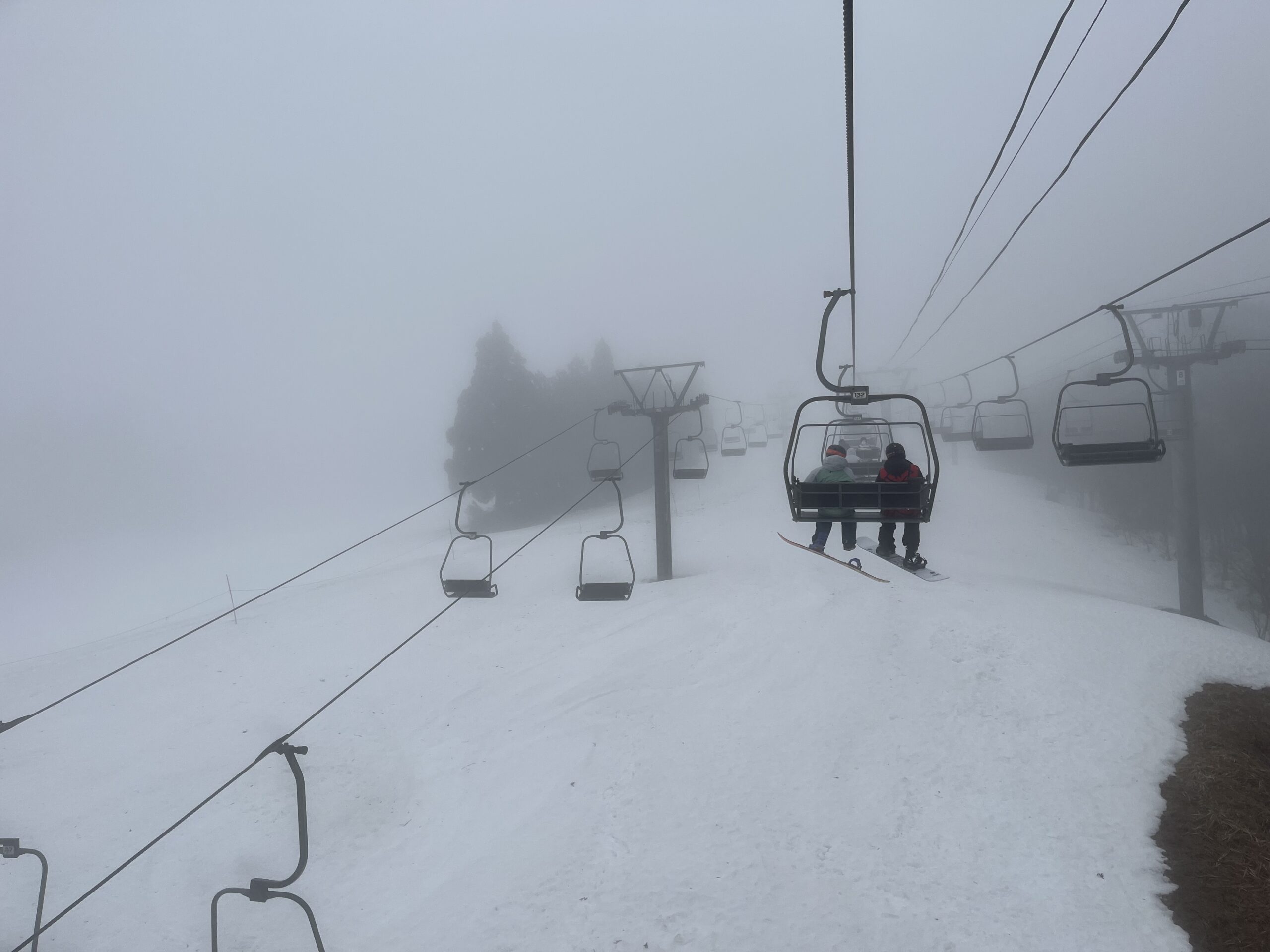 視界が悪くてもハチ北からハチ高原への連結リフト下りはコワイ。