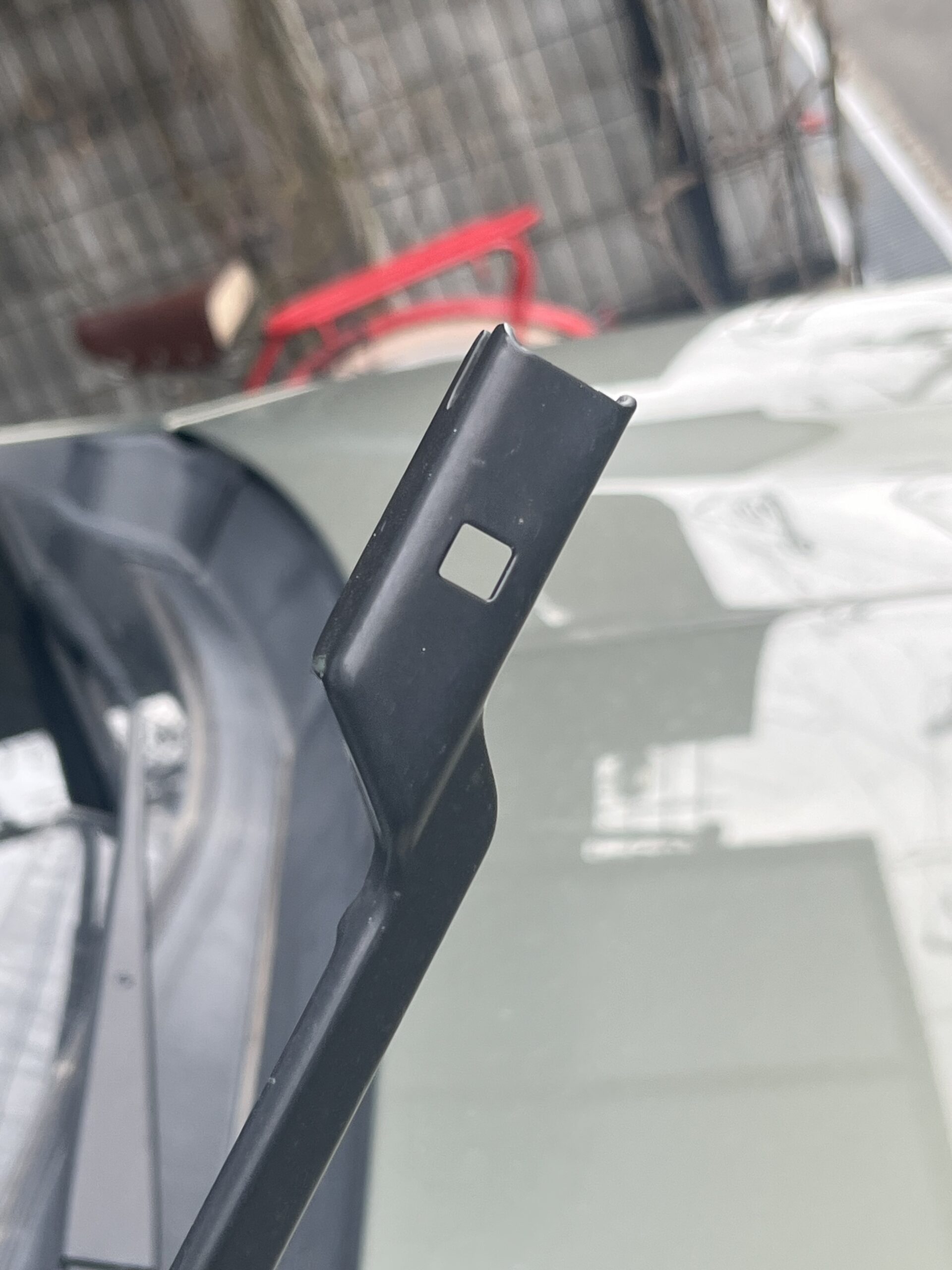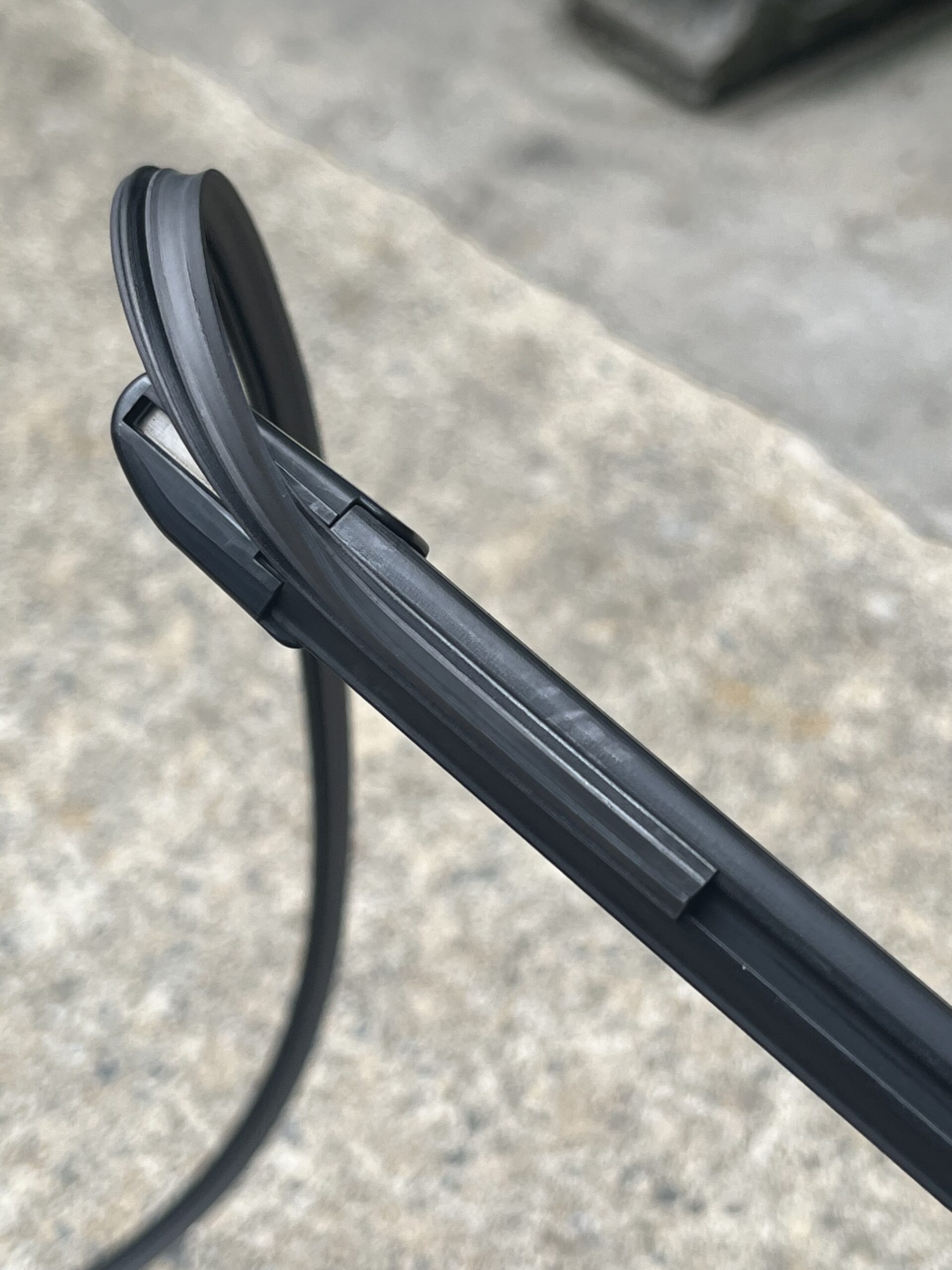 新しいゴムをワイパーブレードに組み込み,ワイパーアームに取り付ければ完了。