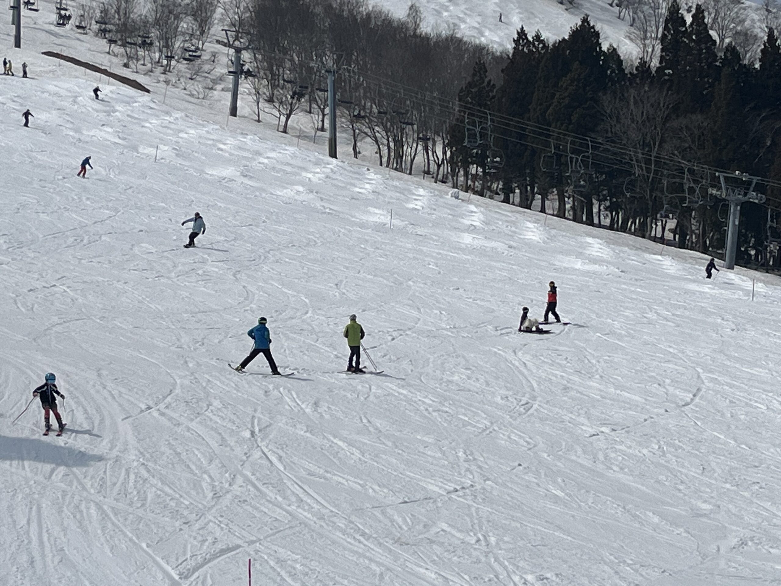 やはり中央ゲレンデはかなり雪が減っていて滑れるコースが限られてきました。